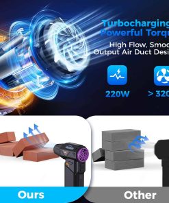 Este soplador de aire comprimido cuenta con un motor con una velocidad de rotación ultra alta de hasta 210000 RPM, capaz de generar una presión de viento de 320g. El potente viento puede eliminar eficazmente el polvo de diversos dispositivos, pudiendo completar eficientemente la limpieza de teclados, computadoras, autos, muebles, etc. Equipado con la notable función de velocidad variable continua, puedes ajustarlo precisamente a la velocidad del viento deseada, haciéndolo perfectamente adecuado para una amplia variedad de tareas. La presión de viento que puede generar oscila entre 20g y 320g. Gracias a esto, estás liberado de las limitaciones de las marchas fijas y tienes la libertad de hacer los ajustes según tus necesidades específicas. Con un diseño inalámbrico y una luz LED integrada, este soplador de aire es portátil y conveniente de llevar a cualquier lugar. La batería de 8000mAh de alta capacidad permite trabajar continuamente durante 180 minutos a baja velocidad y se recarga completamente en aproximadamente 2.5 horas con el cargador rápido incluido. Fabricado con materiales duraderos y un mango antideslizante, este soplador de aire es reutilizable y respetuoso con el medio ambiente. Además de ser utilizado para la limpieza, también puede ser utilizado para secar automóviles, soplar nieve, inflar, y más.