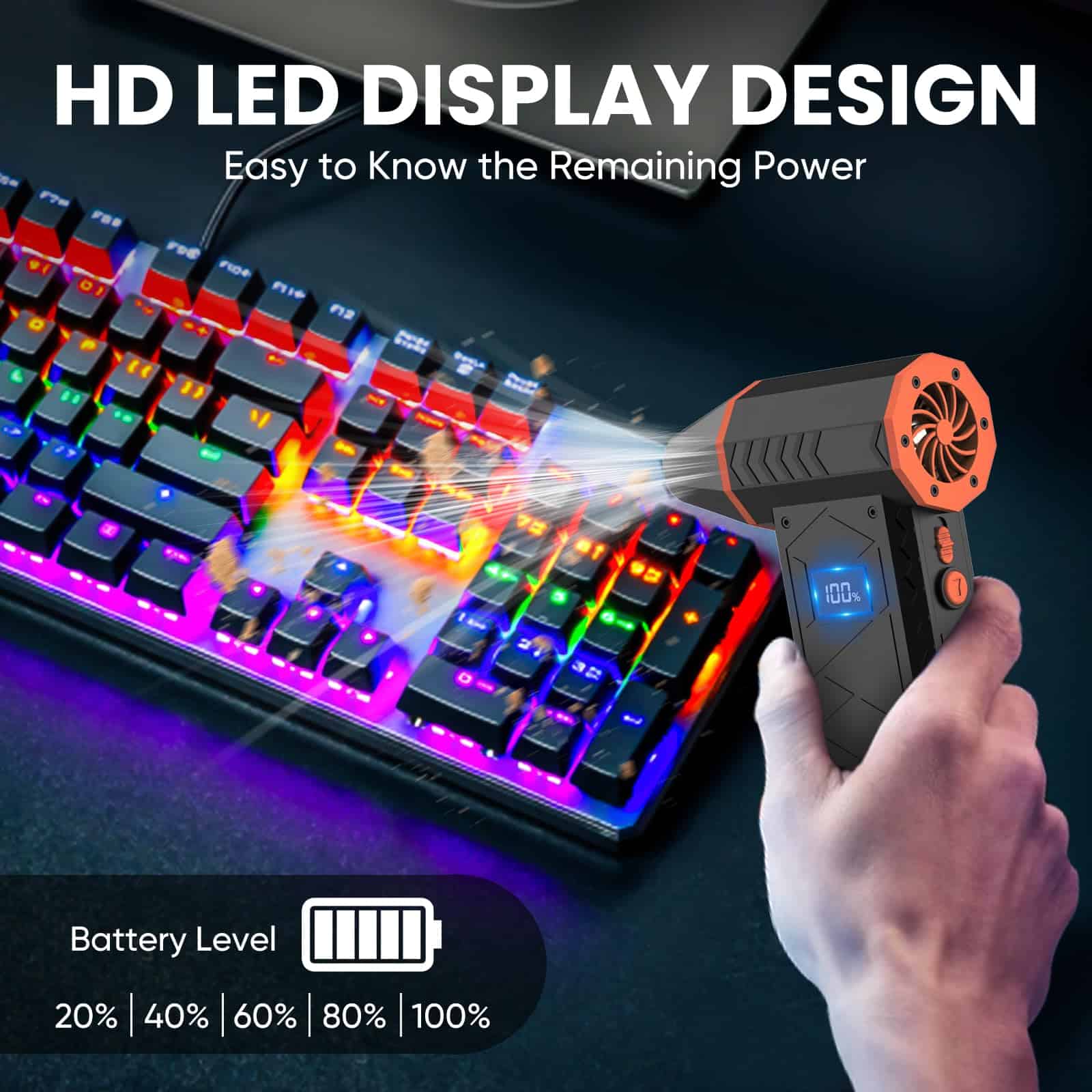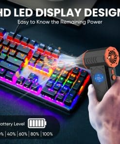 Satisfaga todas sus necesidades de limpieza con el Soplador de Aire Eléctrico AUKZON. Con un motor potente que alcanza una velocidad máxima de 180,000 RPM y una presión de viento máxima de 195g, el potente chorro de aire elimina fácilmente el polvo y la suciedad de sus equipos electrónicos. Las 4 velocidades ajustables permiten adaptarse a diferentes necesidades de limpieza en su hogar, oficina y exteriores. Además, el soplador cuenta con una linterna con 3 modos de iluminación: directa, intermitente y SOS, perfecta para usar al aire libre. La luz auxiliar incorporada proporciona iluminación adicional durante la limpieza. La pantalla LED mejorada muestra claramente la energía restante, para que siempre esté informado del estado de la batería. Recargable y respetuoso con el medio ambiente, el soplador cuenta con una batería integrada de alta capacidad de 10000mAh que se recarga en solo 2.5 horas. A diferencia del aire comprimido, nuestro soplador de aire se puede utilizar de forma repetida sin formar líquidos ni hielo que puedan dañar sus dispositivos electrónicos. Con una amplia gama de usos, el Soplador de Aire Eléctrico AUKZON es capaz de limpiar teclados, carcasas de computadoras y diversos dispositivos electrónicos. También es ideal para limpiar asientos de coche, quitar nieve, hojas y lluvia de retrovisores, así como para su uso en fogatas y limpieza del suelo exterior. Compacto y portátil, fabricado con un nuevo material compuesto que lo hace duradero y ligero (0.69 lbs), el soplador es fácil de transportar a donde quiera que vaya. El paquete incluye: Soplador de Aire 1, Cable Tipo-C 1, Cepillo 8, Manual del Usuario 1. ¡Cómprelo ya y disfrute de una limpieza eficiente y sin complicaciones!