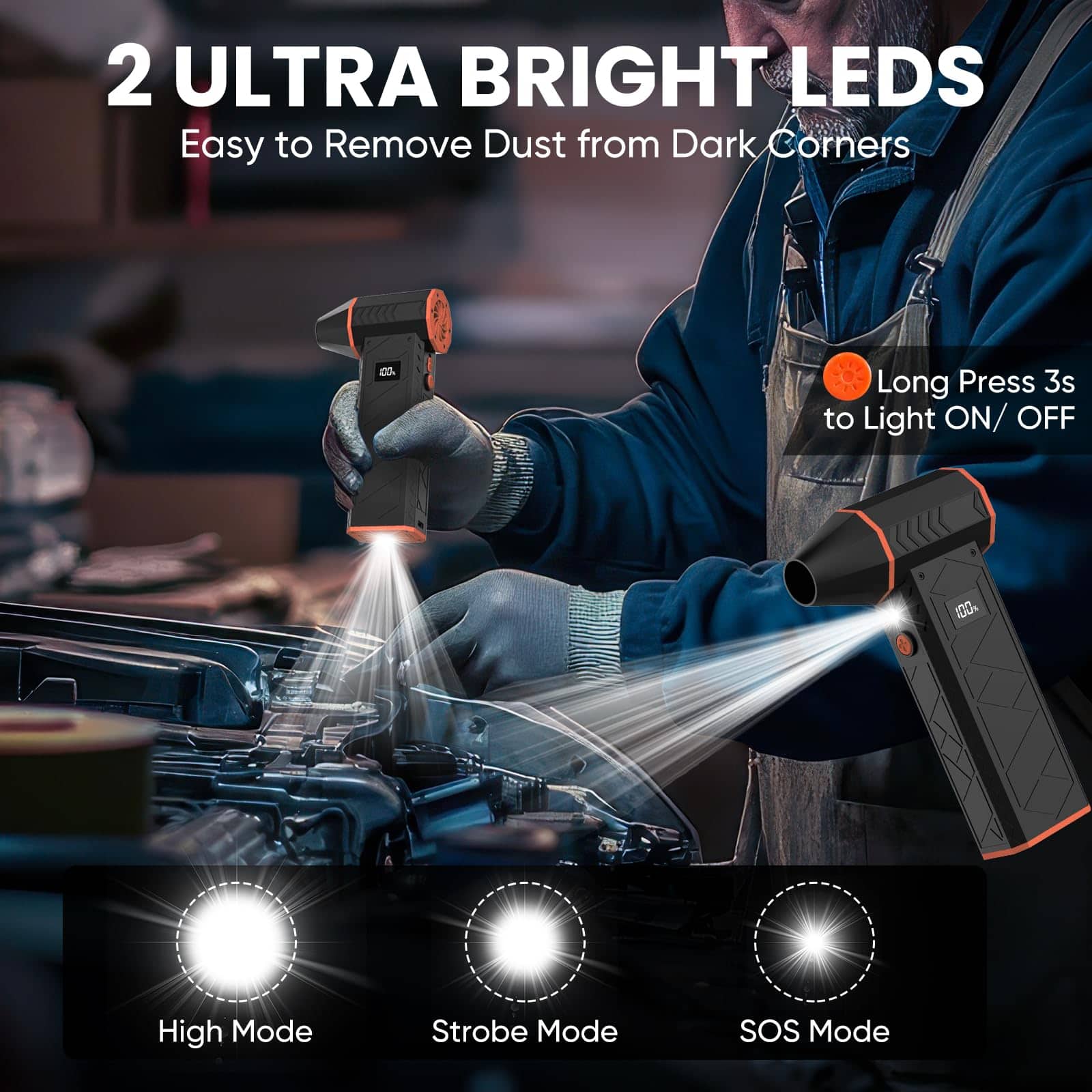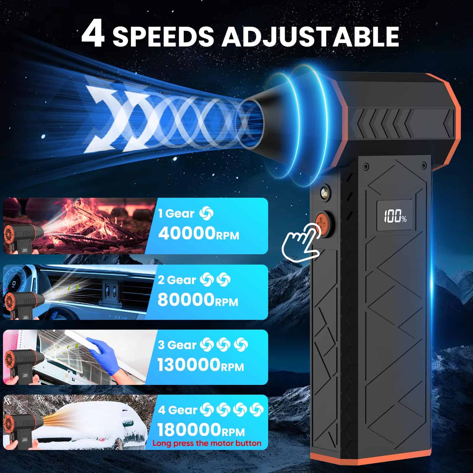 Soplador de Aire Eléctrico con Linterna, 180000RPM Soplador