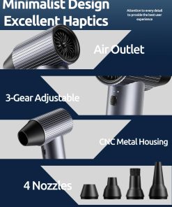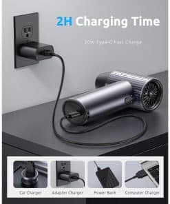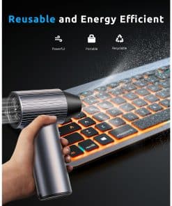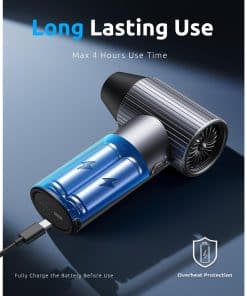 Soplador de aire eléctrico COSANO Full-Metal Jet Dry Mini Blower – 300,000 RPM – Soplador de aire recargable de alta potencia con 3 velocidades y 4 boquillas para limpiar teclados, autos y exteriores – Gris Espacial. Presentamos el soplador de aire comprimido de nivel huracán de COSANO, con un motor sin escobillas de alta eficiencia que alcanza una increíble velocidad de 300,000 RPM y ofrece velocidades de flujo de aire de hasta 120 m/s, comparable a un huracán de categoría 5. Con una potente fuerza de soplado de 300G, elimina sin esfuerzo polvo, residuos y humedad, lo que lo convierte en el soplador eléctrico definitivo para tareas de limpieza pesadas. Construido con materiales resistentes al calor y de metal completo, este soplador de aire eléctrico combina durabilidad con un diseño moderno. Pesa solo 1.03 libras y mide solo 5.4 x 3.2 pulgadas, lo suficientemente compacto como para llevarlo a cualquier lugar. El agarre ergonómico y antideslizante garantiza un agarre seguro y cómodo, ideal para uso en el hogar, la oficina o los viajes. ¡Di adiós a las latas de aire comprimido! Nuestro soplador eléctrico recargable es una inversión única que puede ayudarlo a ahorrar hasta $500 anualmente. Una inversión inteligente para usuarios eco-conscientes que buscan una alternativa más limpia y verde a los sopladores de polvo tradicionales. Equipado con una batería recargable de 2500mAh X 3, este soplador de aire eléctrico funciona durante hasta 4 horas con una sola carga (en el primer engranaje). El puerto USB tipo C es compatible con carga rápida de 20W (adaptador no incluido), manteniendo su soplador de computadora listo para la acción con un tiempo de inactividad mínimo. Las rejillas de enfriamiento patentadas + control de corriente inteligente de 22A evitan el sobrecalentamiento durante las sesiones de soplado manual prolongadas. Este soplador eléctrico incluye limitación de corriente inteligente (22A) + protección contra sobrecalentamiento (NTC a 150 C) + apagado automático después de 3 minutos de inactividad. Diseñado para operar en temperaturas de -20 C a + 60 C, es seguro, confiable y está diseñado para durar un 30% más que las opciones convencionales. Este kit de soplador de computadora incluye el soplador de aire eléctrico, un cable de carga USB tipo C, 4 boquillas versátiles y un manual de usuario, todo lo que necesita para una limpieza eficiente. Perfecto para uso en el hogar, la oficina o automotriz, se puede utilizar como una escoba de aire, un soplador de aire, una sopladora de nieve, un soplador de automóvil para secado o un ventilador de secado turbo. Nuestro equipo de servicio al cliente dedicado siempre está disponible para ayudar con cualquier pregunta o inquietud. Además, ofrecemos una devolución gratuita de 30 días y una garantía de un año para garantizar su completa satisfacción y tranquilidad.