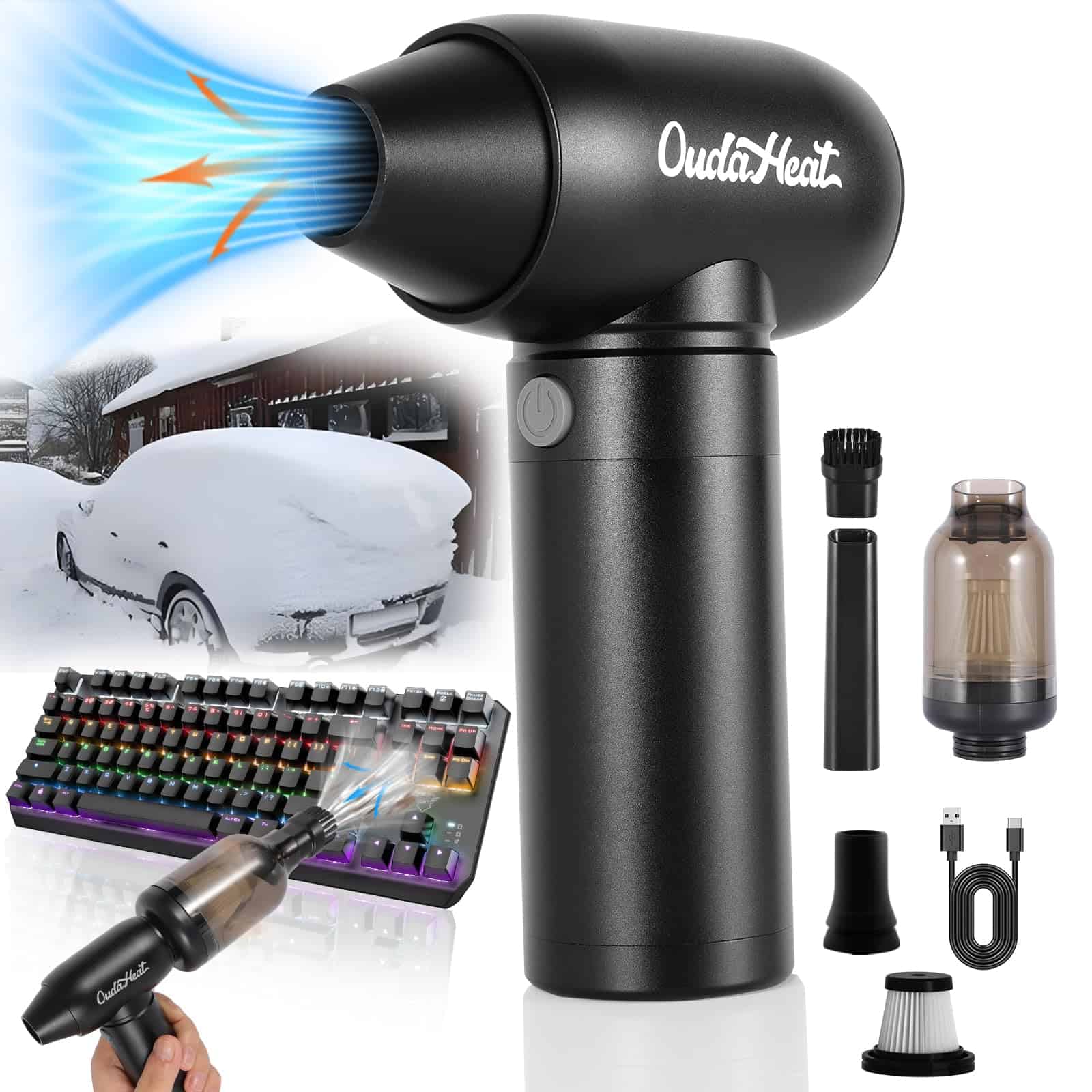 3. 2 en 1 Soplador de Aire y Aspiradora: Esta pistola de aire comprimido con aspiradora cuenta con un modo dual de soplado y succión. No solo elimina la basura y el polvo de los teclados de computadora, automóviles, etc., sino que también actúa como una aspiradora para limpiar la basura residual. Haciéndolo una excelente compra para sus necesidades de limpieza, le permite no preocuparse más por la limpieza.