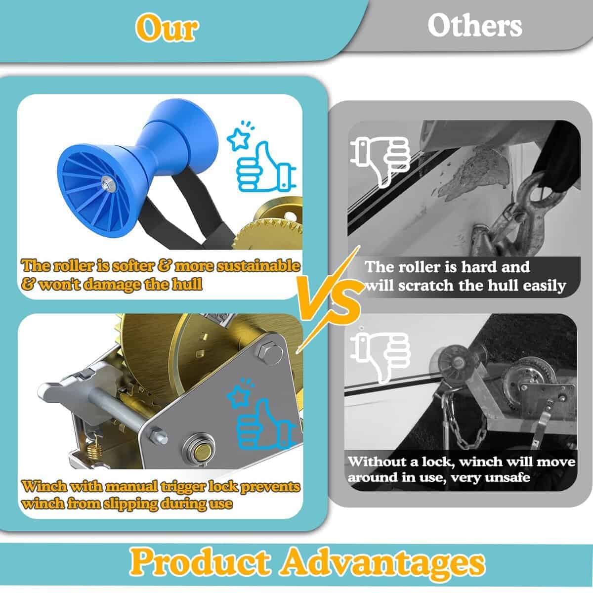1. Estabilize el bote y proporcione comodidad: El soporte ajustable DITKOK con cabrestante de remolque puede estabilizar el bote en el marco de remolque y proporcionar mucha comodidad. Equipado con un cabrestante para facilitar la carga y descarga del bote, ya sea un lanzamiento desde el muelle o remolcar un bote a tierra, este soporte de cabrestante para remolque de bote puede proporcionar soporte y estabilidad, para que pueda ahorrar su corazón y energía. El cabrestante viene con una correa de nylon de 26 pies que ofrece una excelente potencia de elevación y tracción de carga de hasta 1,200 libras.