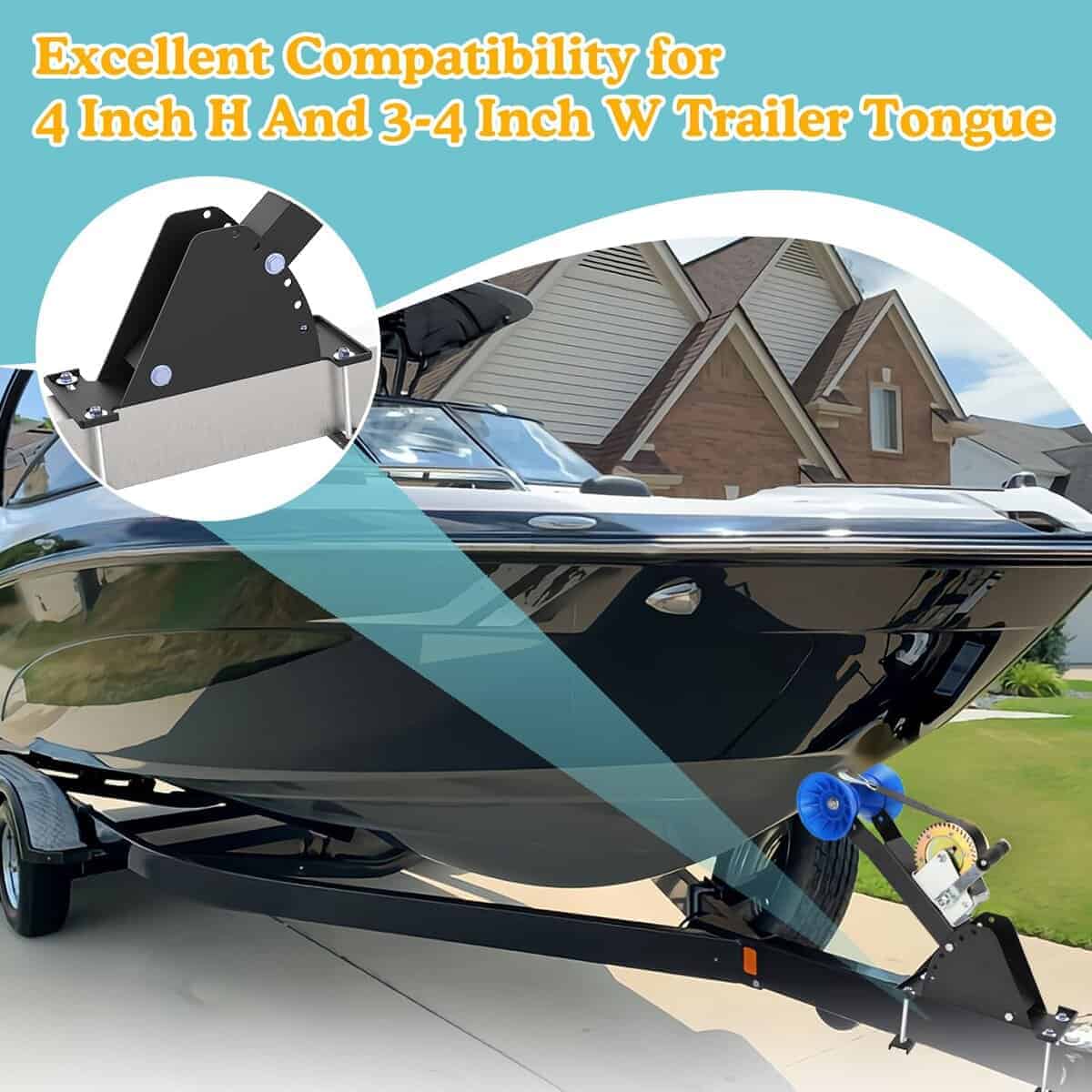 4. Súper compatible, estable y seguro: Este soporte de cabrestante para bote está ampliamente disponible y es compatible, adecuado para barras de remolque de remolque de 3 pulgadas (aproximadamente 7.6 cm) a 4 pulgadas (aproximadamente 10.2 cm) de ancho, se adapta a la mayoría de las configuraciones de remolques en el mercado. La hebilla de cabrestante de este soporte de cabrestante de remolque puede fijar la correa de cabrestante, lo que puede proporcionar un soporte seguro para su bote durante el transporte, evitando que el bote se resbale y deslice, para que pueda tener un alto nivel de tranquilidad.