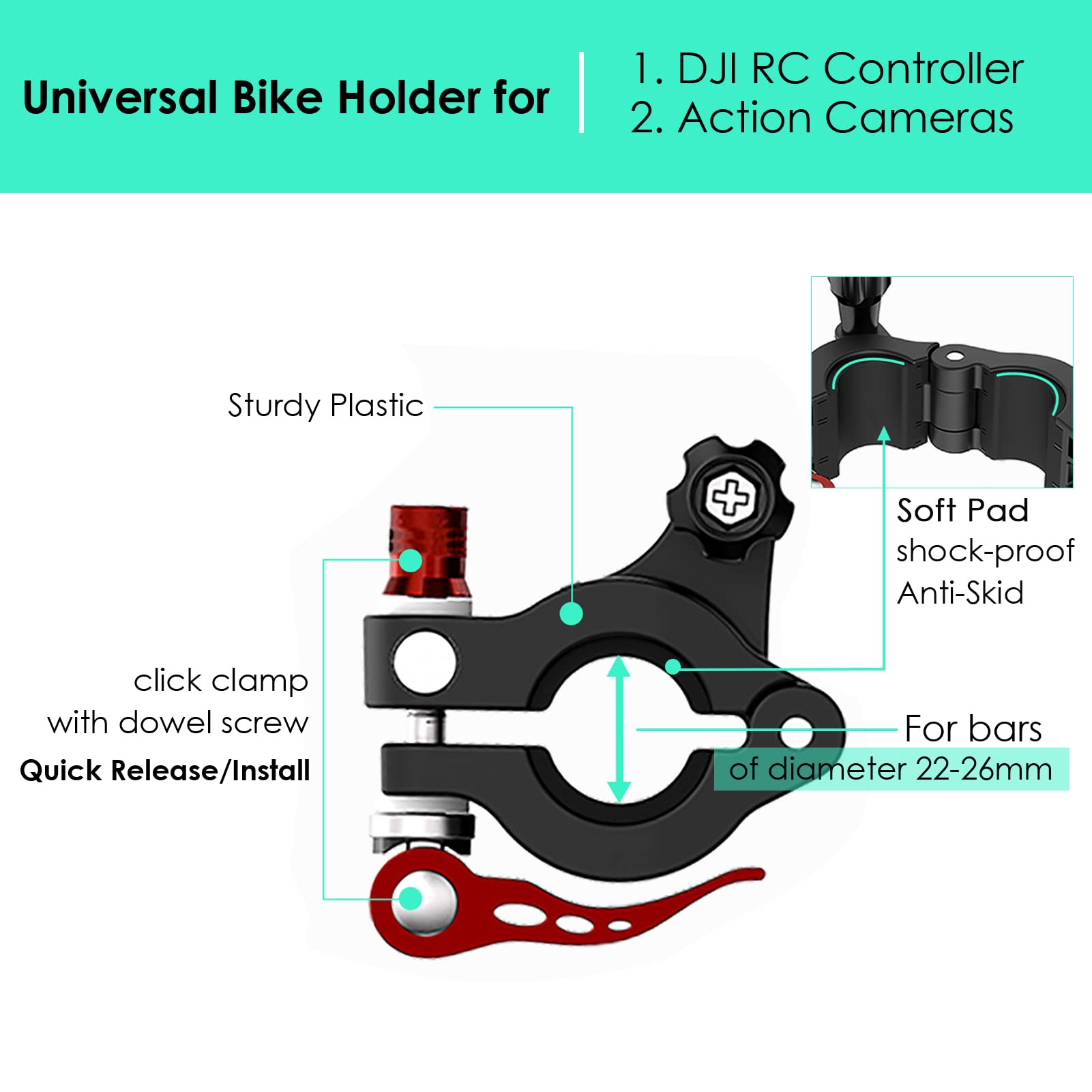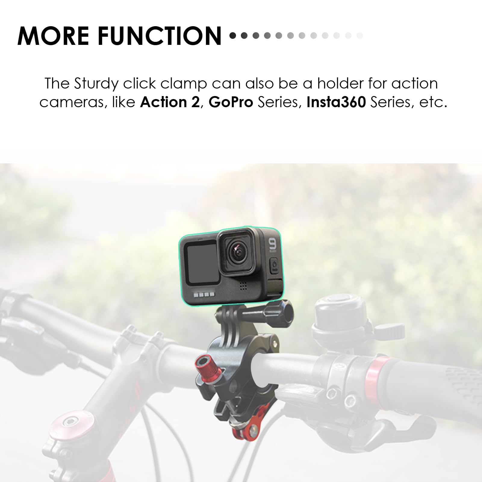 4. Soporte de Cámara de Acción para Bicicletas: El clip de la abrazadera también se puede utilizar para Action 2, la serie GoPro, la serie Insta360.