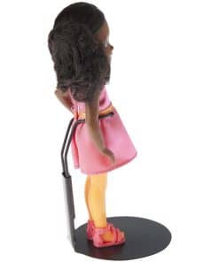 Cómo Usar: Este soporte está diseñado para adaptarse a la mayoría de las figuras de acción y muñecas de moda de 4.5″-5.5″ incluyendo figuras de acción vintage de Masters of the Universe, Toy Biz X-Men y Spider-Man de los 90, figuras de acción de Star Trek de Playmates, Mattel Barbie Kelly y Chelsea, y muñecas Madame Alexander de McDonald’s. Para usar, coloque el broche de alambre alrededor de la cintura de su muñeca o figura, y luego inserte la sección puntiaguda del alambre de la cintura en la base del soporte. Ajuste hacia arriba o hacia abajo para apoyar mejor a su muñeca o figura.