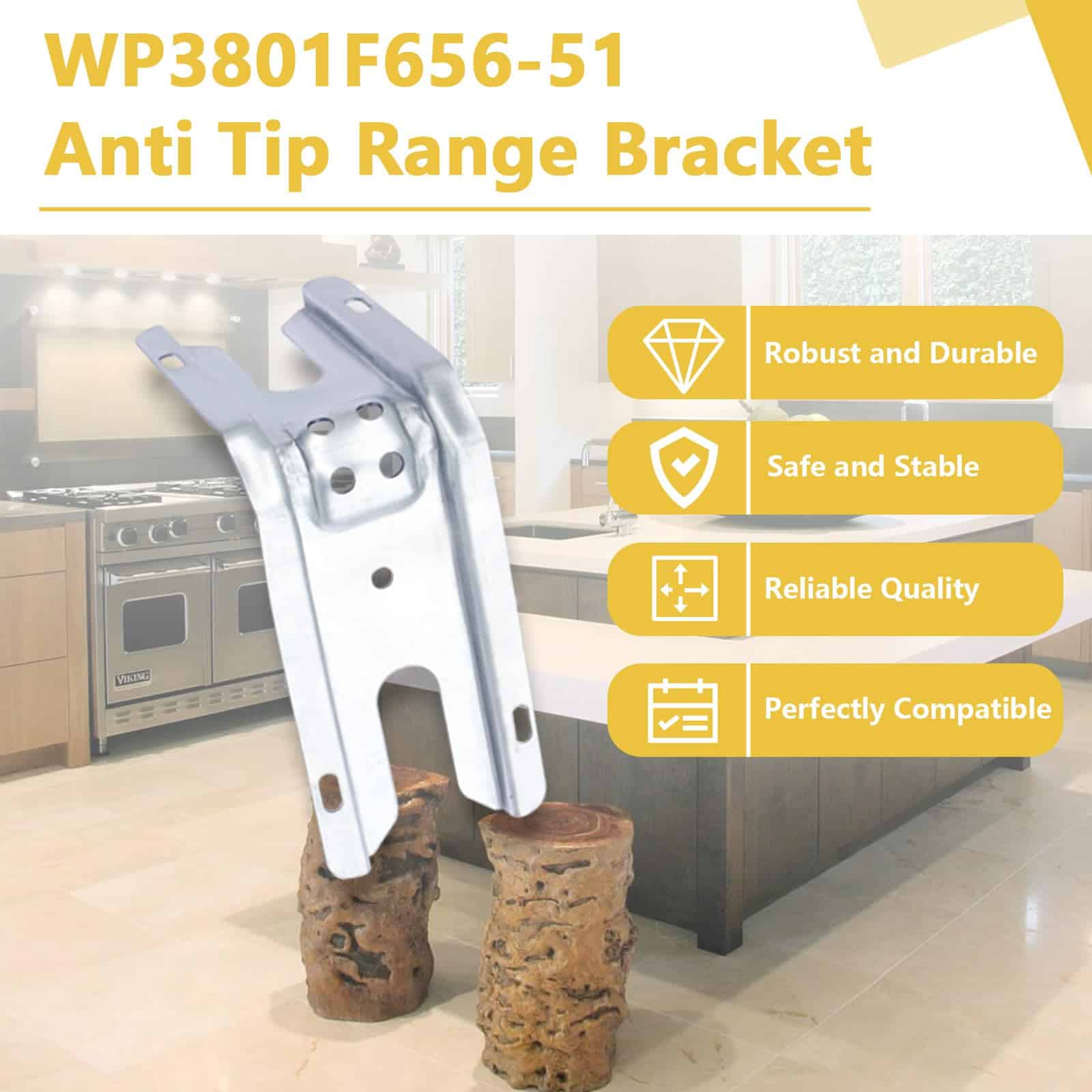 Nuestro Soporte Antivuelco WP3801F656-51 es una característica de seguridad indispensable para tu cocina. Puedes cocinar con confianza sabiendo que tu rango está seguro y estable. Con su diseño resistente, evita que tu rango se incline hacia adelante, incluso cuando tienes utensilios de cocina pesados en la puerta del horno abierta o en las rejillas extendidas del horno. ¡Gracias por elegir nuestro producto! La instalación es simple y puedes hacerla tú mismo con herramientas básicas de mano, como un destornillador multifunción. Recuerda desenchufar el electrodoméstico antes de comenzar la instalación y usar guantes al manipular bordes afilados.