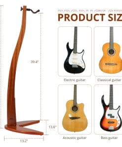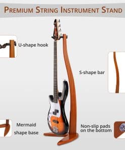 El diseño único y elegante en forma de sirena añade un toque creativo y artístico a cualquier espacio, perfecto para exhibir y almacenar su instrumento, siendo ideal para músicos, coleccionistas y decoradores del hogar. Este soporte es una manera elegante de mantener organizados y exhibidos sus instrumentos, convirtiéndose en un artículo decorativo perfecto para estudios, salas de estar o escenarios. Hecho de madera maciza de alta calidad, disponible en bambú/sapele/nogal negro, este soporte ofrece resistencia y estabilidad duradera para sostener de forma segura su guitarra o bajo. Diseñado para proteger su instrumento de rayones y golpes, garantizando un almacenamiento seguro y libre de daños. Con una altura óptima de 42 pulgadas, permite una fácil exhibición y almacenamiento de guitarras y bajos, manteniéndolos en posición vertical y accesibles al mismo tiempo que los muestra como parte de la decoración de su habitación. Proceso de montaje y instalación simple, permitiendo una configuración rápida. Acomoda diversos tamaños y formas de guitarra para un ajuste personalizado.