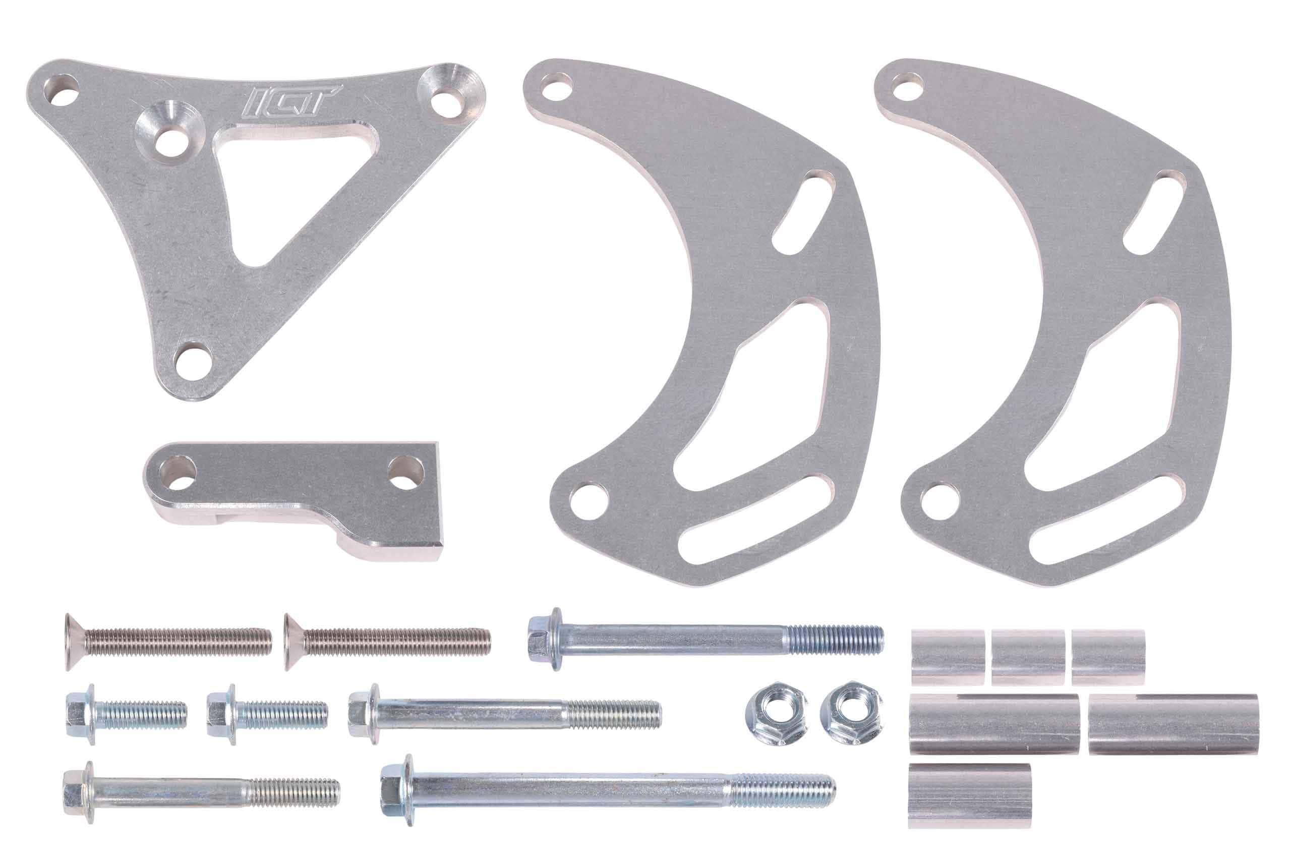 Coloca el alternador junto a la cabeza del lado del pasajero, diseñado para limpiar solo bombas de agua remotas Compatible con: Polea del cigüeñal LS1 de Camaro (ICT BAL200) Alternador: (ICT ALT300) (no se ajustará a alternadores de patrón de perno grande de Corvette/CTSV o Camaros grandes después de 2010), se ajustará a cualquier otro alternador de vehículos LS con cualquier amperaje Si necesita extender la conexión de su arnés de alternador, use ICT WEALT30-36 (de 4 pines) o WEALT40-36 (de 2 pines) Fabricado en Wichita, Kansas a partir de aluminio billet producido en EE. UU. de grado aeroespacial Incluye: soporte de alternador y herrajes de montaje Compatible con correa de 436K6 (43.6 pulgadas) cuando se usa con alternador de 105 amperios. Los alternadores de 145 y 160 amperios usarán aproximadamente una correa 3/4″ más larga