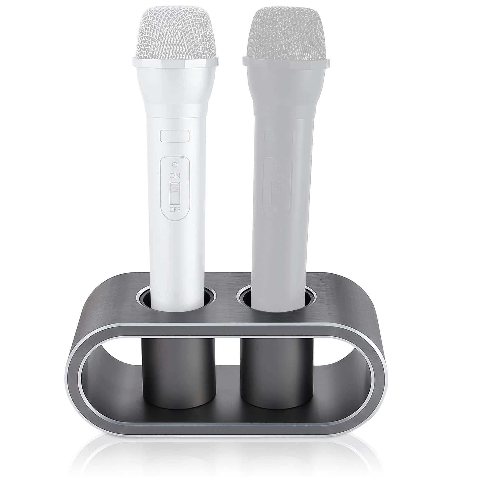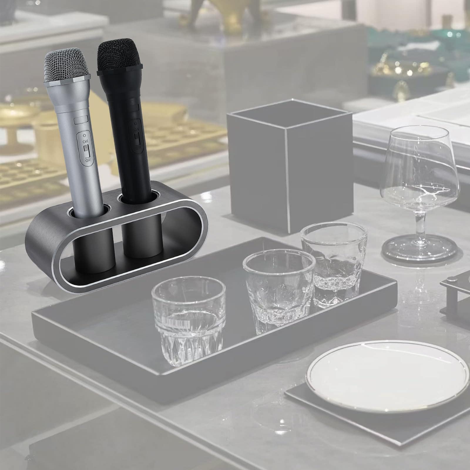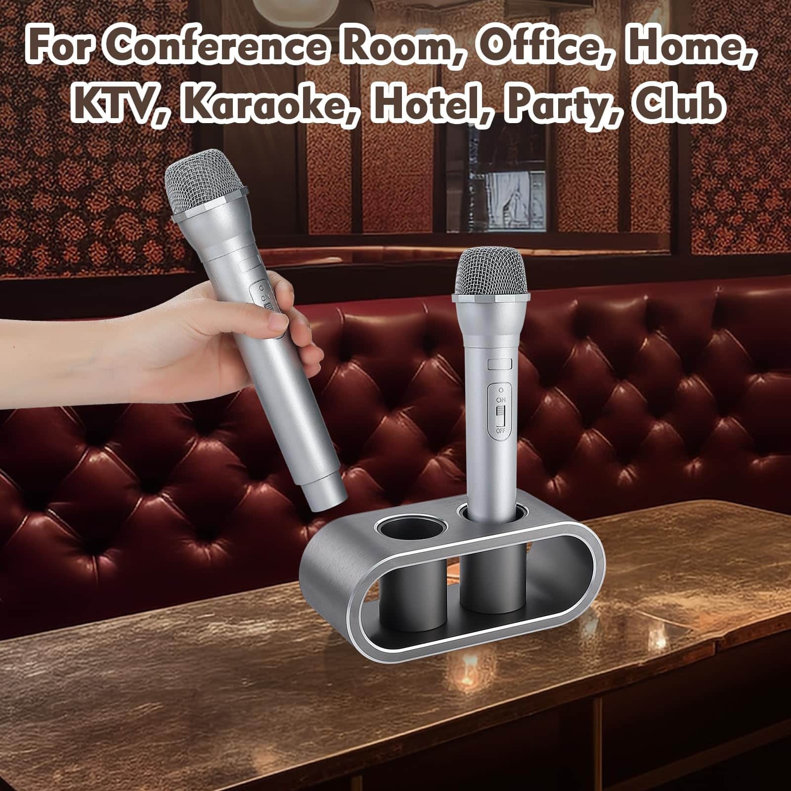 Soporte de Aluminio para Almacenamiento de Micrófonos de Escritorio de Metal WikrOck, Base de Soporte para Micrófonos Inalámbricos, Organizador de Micrófonos Elegante para Salas de Reuniones, Oficinas, Hogares, KTV, Karaokes, Hoteles, Fiestas, Clubes