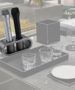 Material metálico, colocado de forma más estable. Duradero y resistente a caídas. Perfecto para almacenar micrófonos en Salas de Reuniones, Oficinas, Hogares, KTV, Karaokes, Hoteles, Fiestas, Clubes.