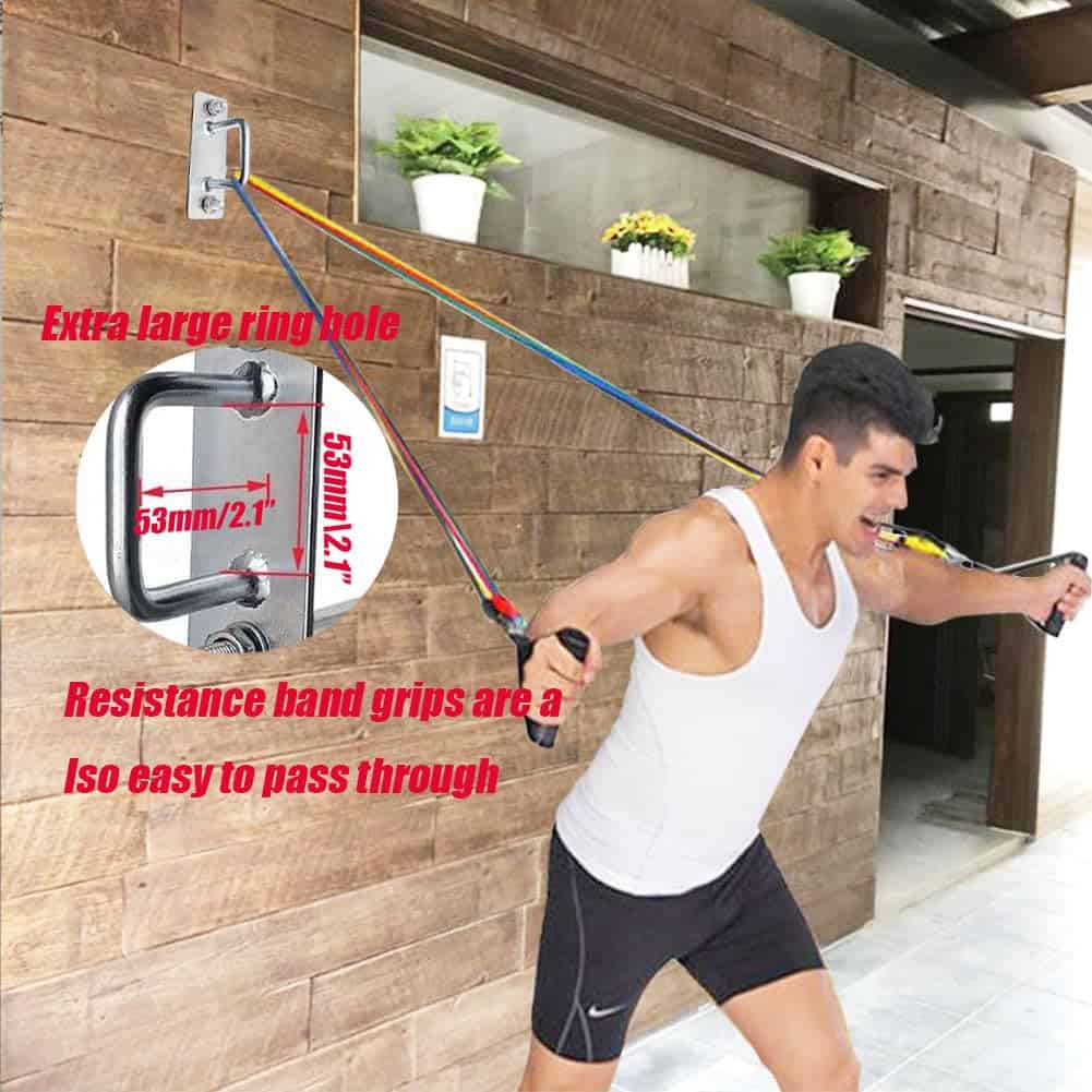 Soporte de Anclaje de Pared y Techo Qinwuwu para Anillos de Gimnasia, Anillos Olímpicos, Columpios de Yoga, Hamacas, Cuerdas de Batalla, Sistemas de Entrenamiento de Peso Corporal, Equipo de Boxeo. Este soporte de anclaje de pared y techo Qinwuwu es ideal para una amplia variedad de usos, desde anillos de gimnasia y anillos olímpicos hasta columpios de yoga, hamacas, cuerdas de batalla y equipos de boxeo. El diseño innovador hace que su uso sea más flexible y se pueda utilizar de forma más amplia. Con un proceso de soldadura premium, puede soportar de forma segura hasta 2800 LB. El anclaje de pared está hecho de acero pesado de alta calidad, lo que garantiza resistencia a la corrosión y una gran durabilidad. Es fácil de instalar, solo necesita usar los tornillos incluidos para fijarlo en el techo de concreto o viga de madera. Puede instalarse en pocos minutos y en la ubicación deseada. El anclaje de pared para fitness tiene un agarre de longitud y ancho de 53mm/2.1 pulgadas que permite que pase fácilmente a través de la banda de resistencia. Además, su diseño cerrado mantiene el ejercicio con cuerda cómodo. Perfecto tanto para entrenamientos en casa como en el gimnasio. Con una amplia aplicación que incluye bandas de resistencia, correas de peso corporal, entrenamientos de fuerza, yoga, gimnasio en casa, ejercicios de terapia física y bandas de bucle cerrado, este soporte de anclaje de pared y techo Qinwuwu es una opción versátil y duradera para su rutina de ejercicio diaria.