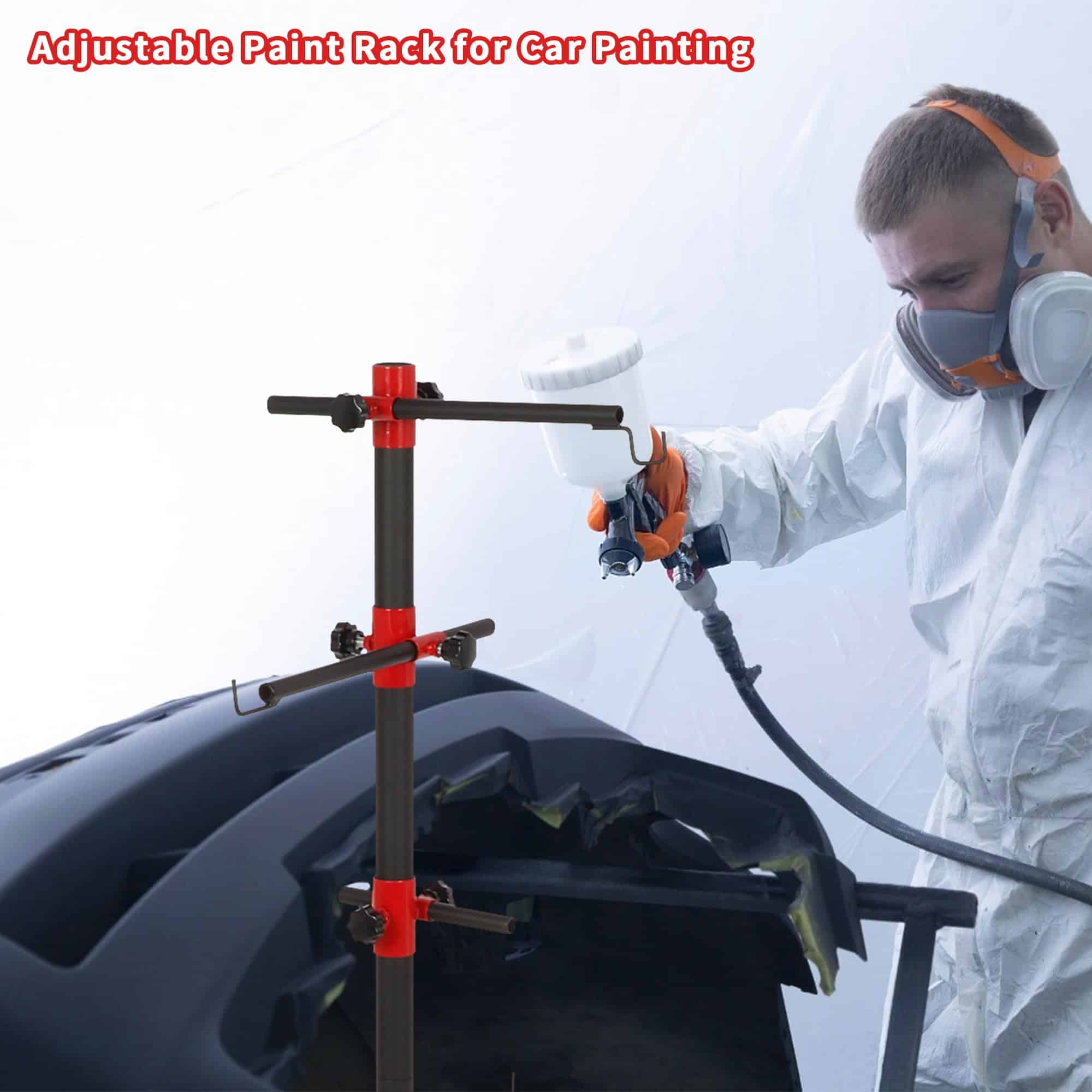 2. El pilar central se puede ajustar Equipado con un soporte de pintura con pilar central ajustable, la barra fija en el pilar central se puede ajustar según el uso real, lo que lo hace más conveniente para su uso. Es muy adecuado para que lo use al pintar parachoques de autos, puertas de cara, guardabarros, etc.