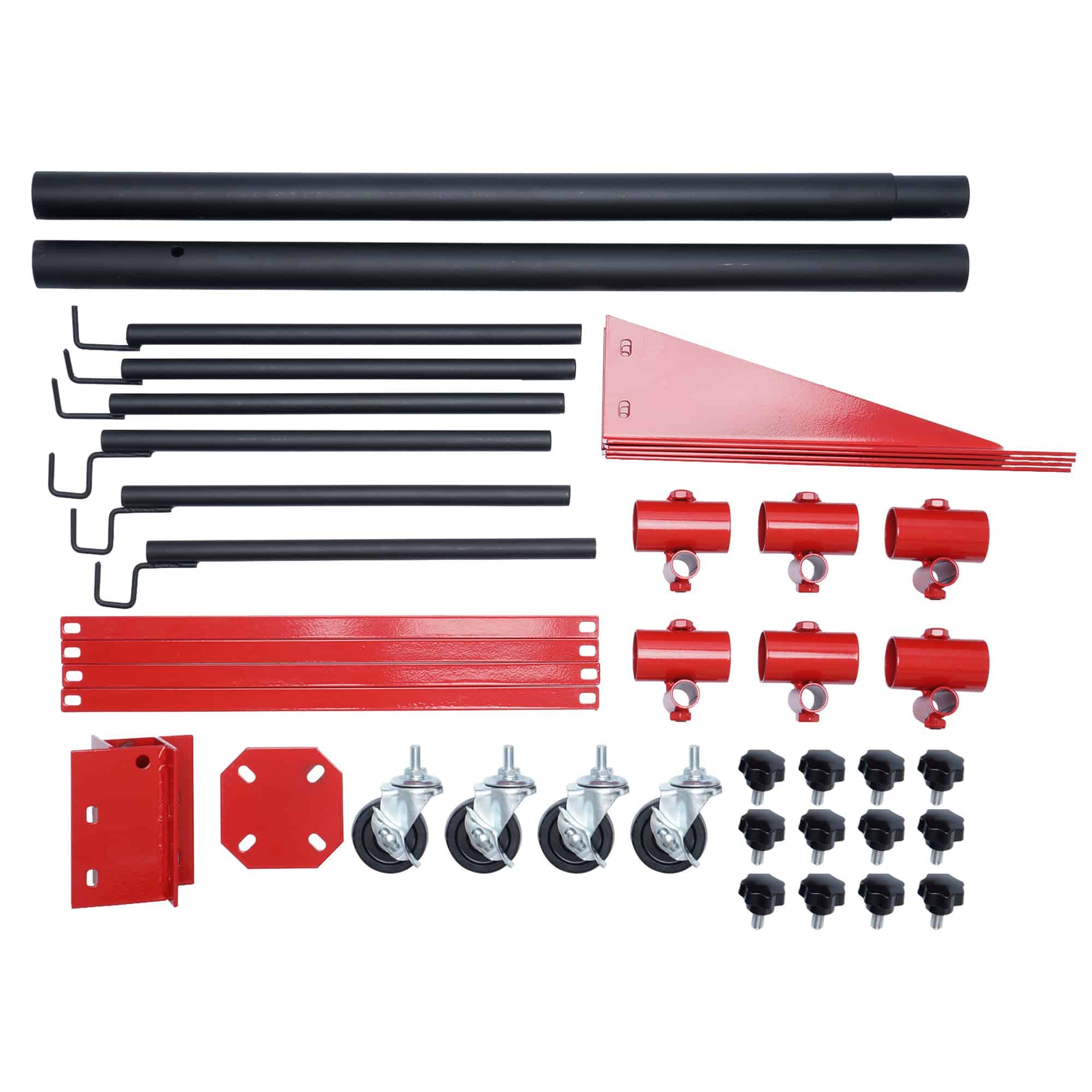 4. Instalación fácil El paquete que recibirá incluirá la parte base del soporte de pintura, la parte del pilar central, seis partes de barra fija, así como un paquete de tornillos fijos y herramientas de configuración e instrucciones. La rueda universal en la base de este soporte de pintura para automóvil se puede fijar para asegurar que el soporte de pintura para automóvil no se mueva durante la operación.