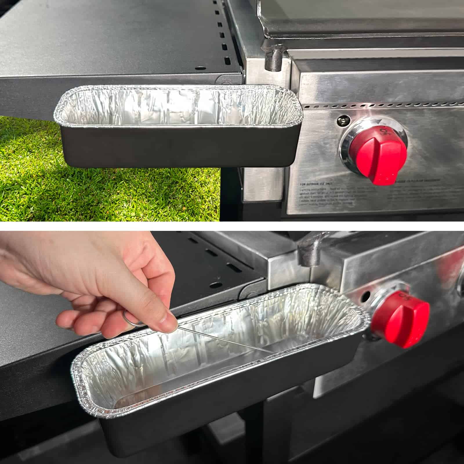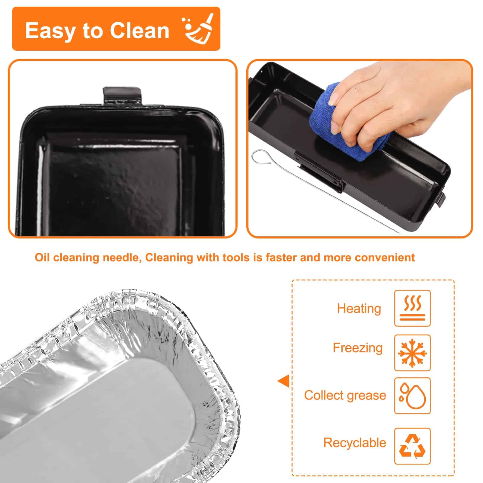 Soporte de bandeja recolectora de grasa Utheer para parrillas Camp Chef. Hecho de acero pintado duradero para garantizar un uso duradero. Compatible con parrillas de Camp Chef como Explorer 2/3 quemadores y más. Fácil de limpiar: simplemente limpie cualquier exceso de aceite con una toalla de papel o un paño, luego use un cepillo para parrilla con jabón y agua para limpiar la bandeja. Seca completamente antes de almacenar. Fabricado con materiales de calidad superior para una mayor resistencia. Seguro para la salud: hecho de acero pintado seguro para el cuerpo humano. Asegúrese de limpiar regularmente para evitar la acumulación de residuos.