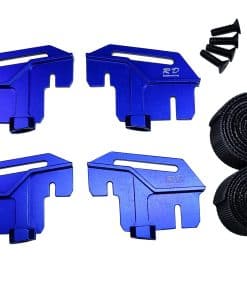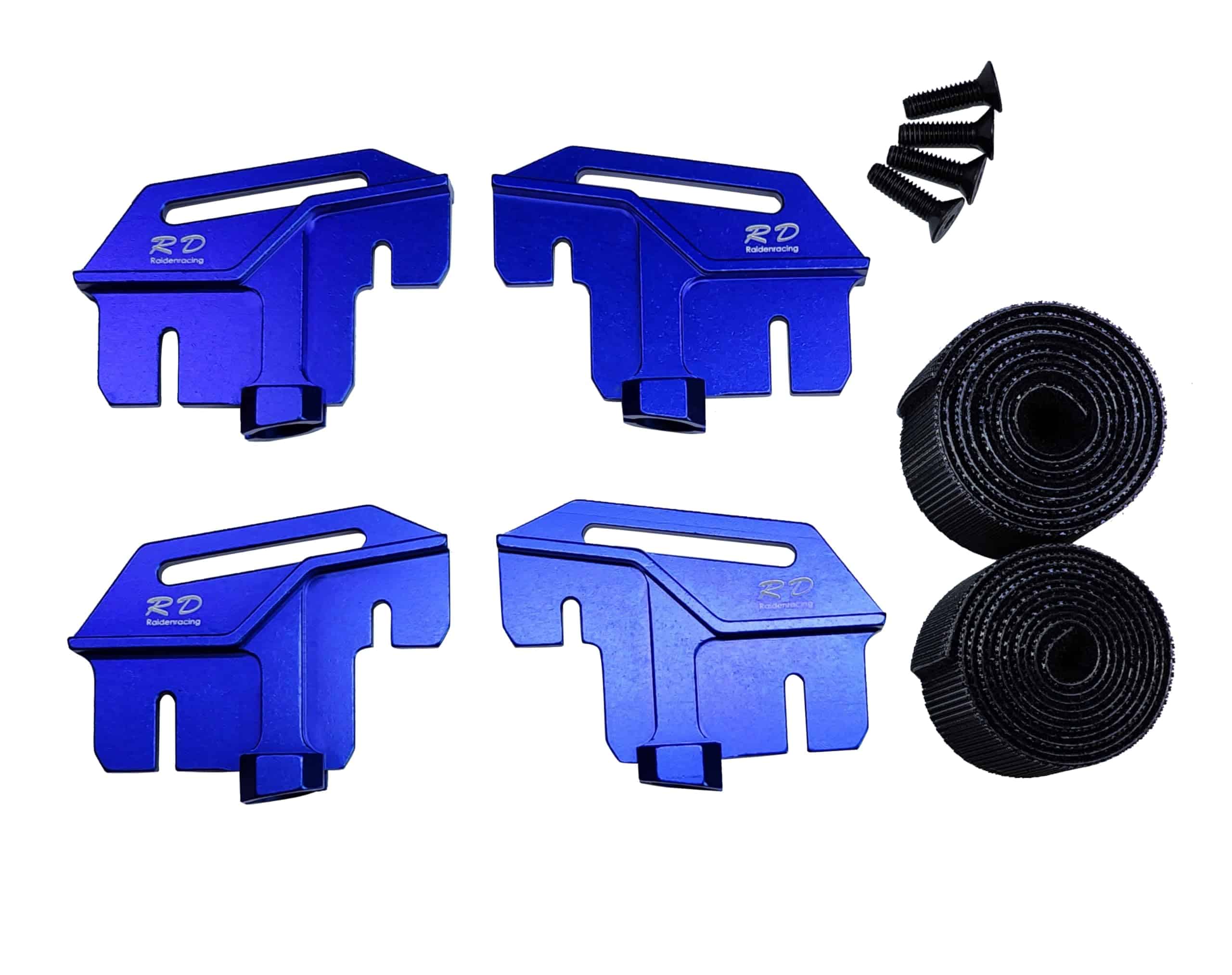 Soporte de batería alto de aluminio para Traxxas 1/6 XRT en color azul. Este accesorio está fabricado en aluminio 6061 de alta calidad y está diseñado específicamente para el modelo Traxxas 1/6 XRT. Es importante tener en cuenta que este artículo incluye el soporte de la batería, pero no el chasis que se muestra en la imagen. Además, viene con 4 soportes de correa, 2 correas y 4 tornillos para una fácil instalación.