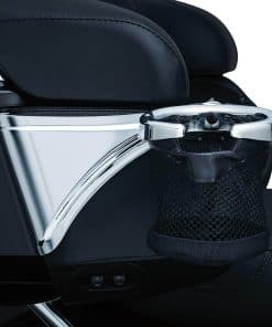 El soporte de bebidas y copa para pasajero de motocicleta Kuryakyn 1692 con canasta de malla permite acceso instantáneo a tu bebida mientras estás en movimiento; ideal para colocación en el lado derecho del pasajero. Cuenta con «dedos» para sujetar firmemente recipientes de diferentes tamaños y mantener la bebida en su lugar. Construcción de calidad con piezas cromadas que se mezclan con tu moto, canasta de malla en negro y fondo sólido que evita que tu contenedor se deslice. Incluye (1) ensamblaje de soporte de bebidas para pasajero, (1) montaje de soporte de bebidas, (1) paquete de antiadherente, (1) kit de montaje de soporte de bebidas para pasajero y (1) kit de hardware; herramientas sugeridas para la instalación (no incluidas): juego de llaves de vaso con trinquete. El soporte de bebidas y copa para pasajero de motocicleta Kuryakyn 1692 con canasta de malla es compatible con los modelos Harley-Davidson: FLHTCU Ultra Classic Electra Glides ’14-’19, FLHTK Ultra Limiteds, FLHTCUTG Tri-Glides, FLTRU Road Glide Ultras ’16-’19 y FLTRUSE CVO Road Glide Ultras ’15-’16.