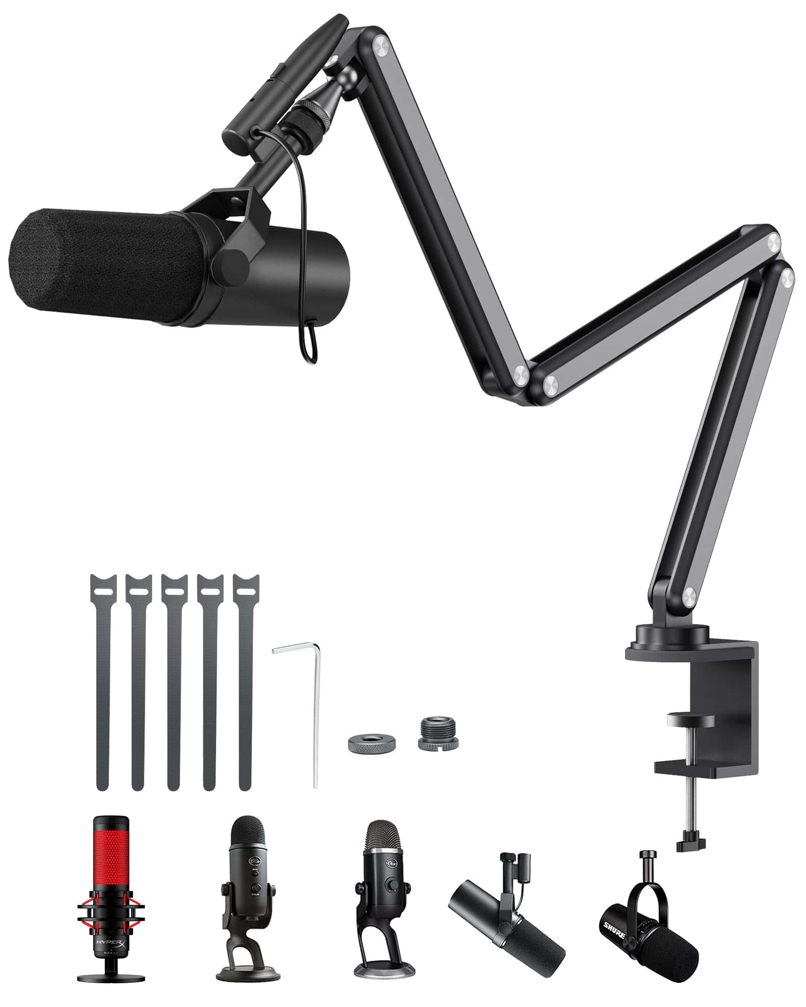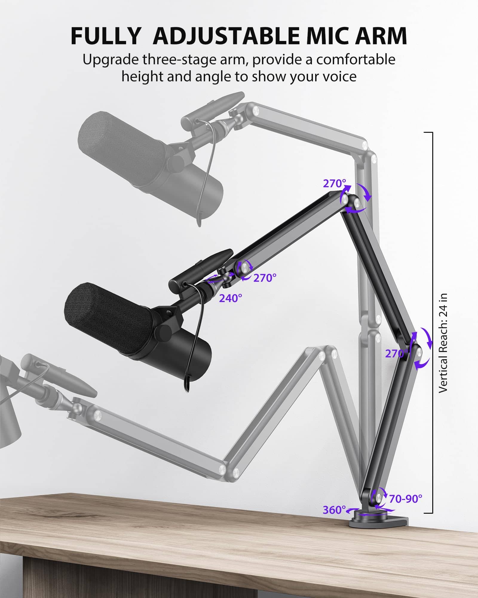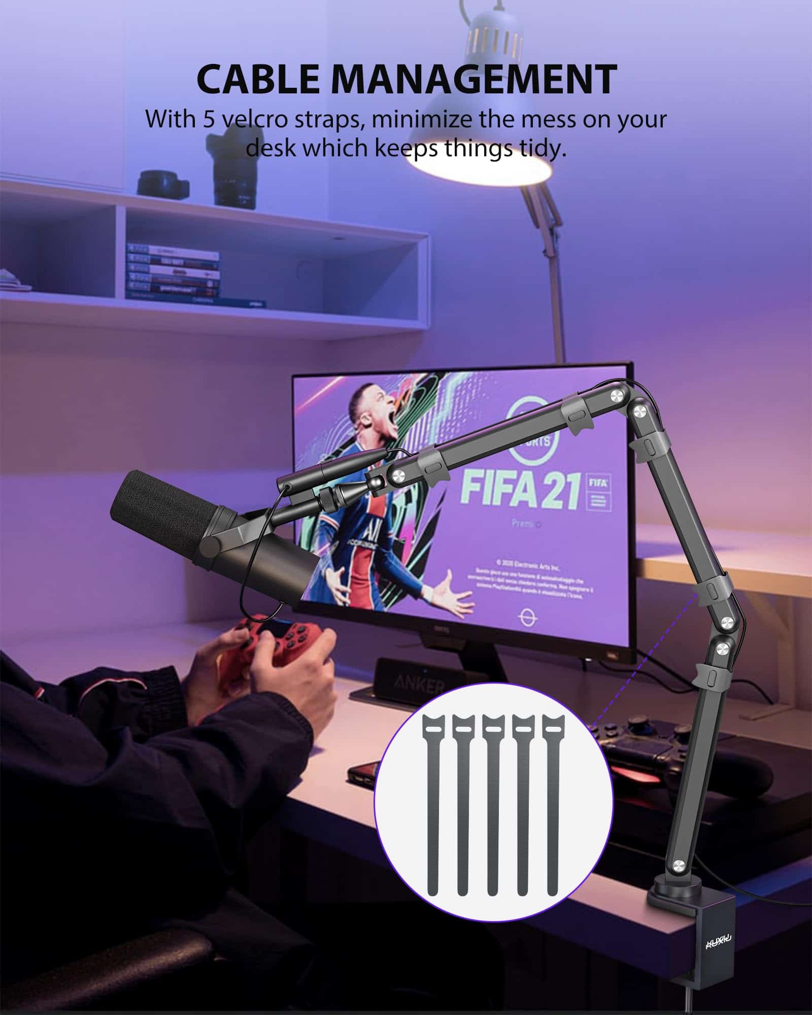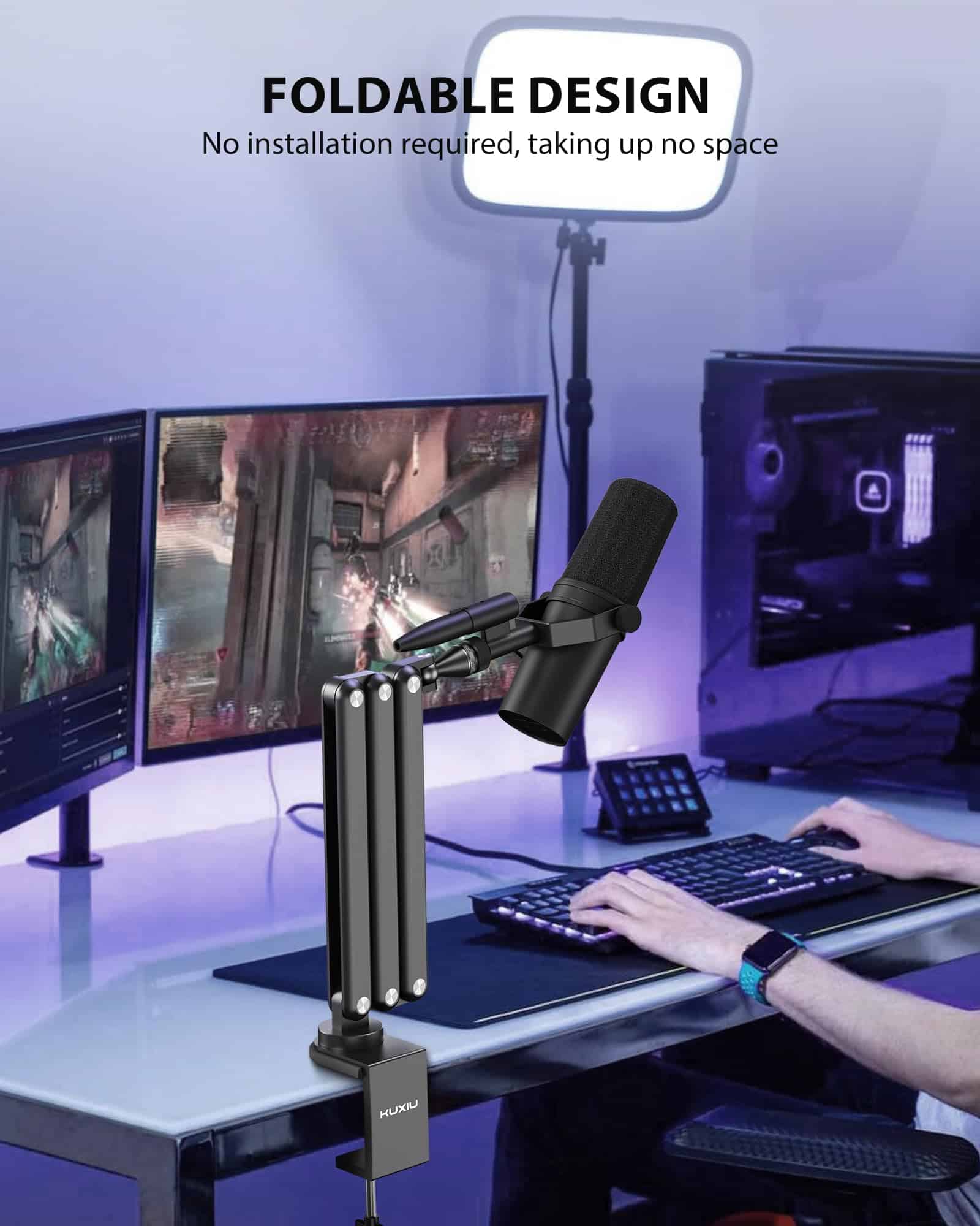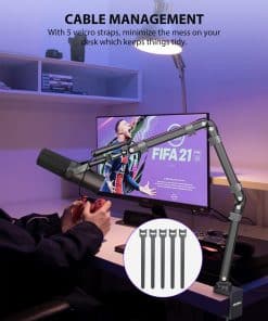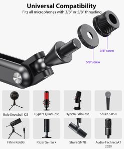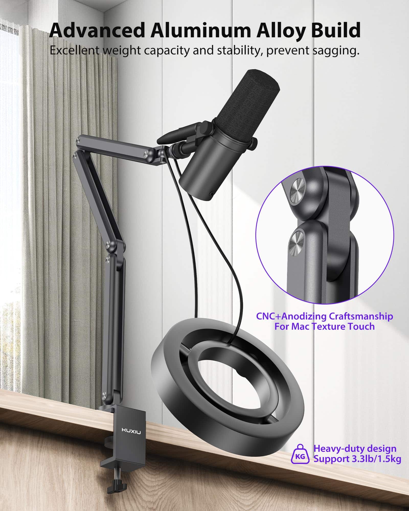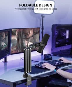 Soporte de boom de micrófono de aleación de aluminio KU XIU para escritorio con canal de administración de cables, altura máxima de 26.77 pulgadas/68 cm, 5 juntas de ángulo ajustables (incluyendo 1 70-90 , 3 270 , 1 240 ), 1 360 gimbal. Fabricado con material de aleación de aluminio resistente y duradero, con capacidad de carga máxima de 3.3 libras (1.5 kg). Diseño plegable para un almacenamiento fácil sin desarmar, con velcro para mantener los cables organizados.