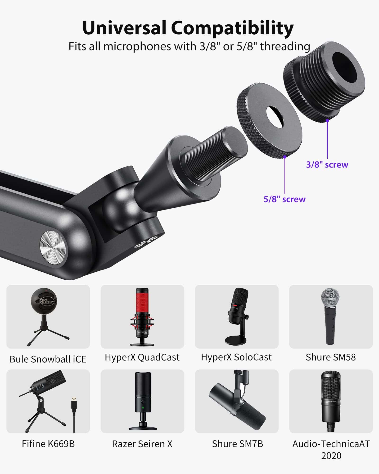 Soporte de brazo de micrófono de aleación de -Gris