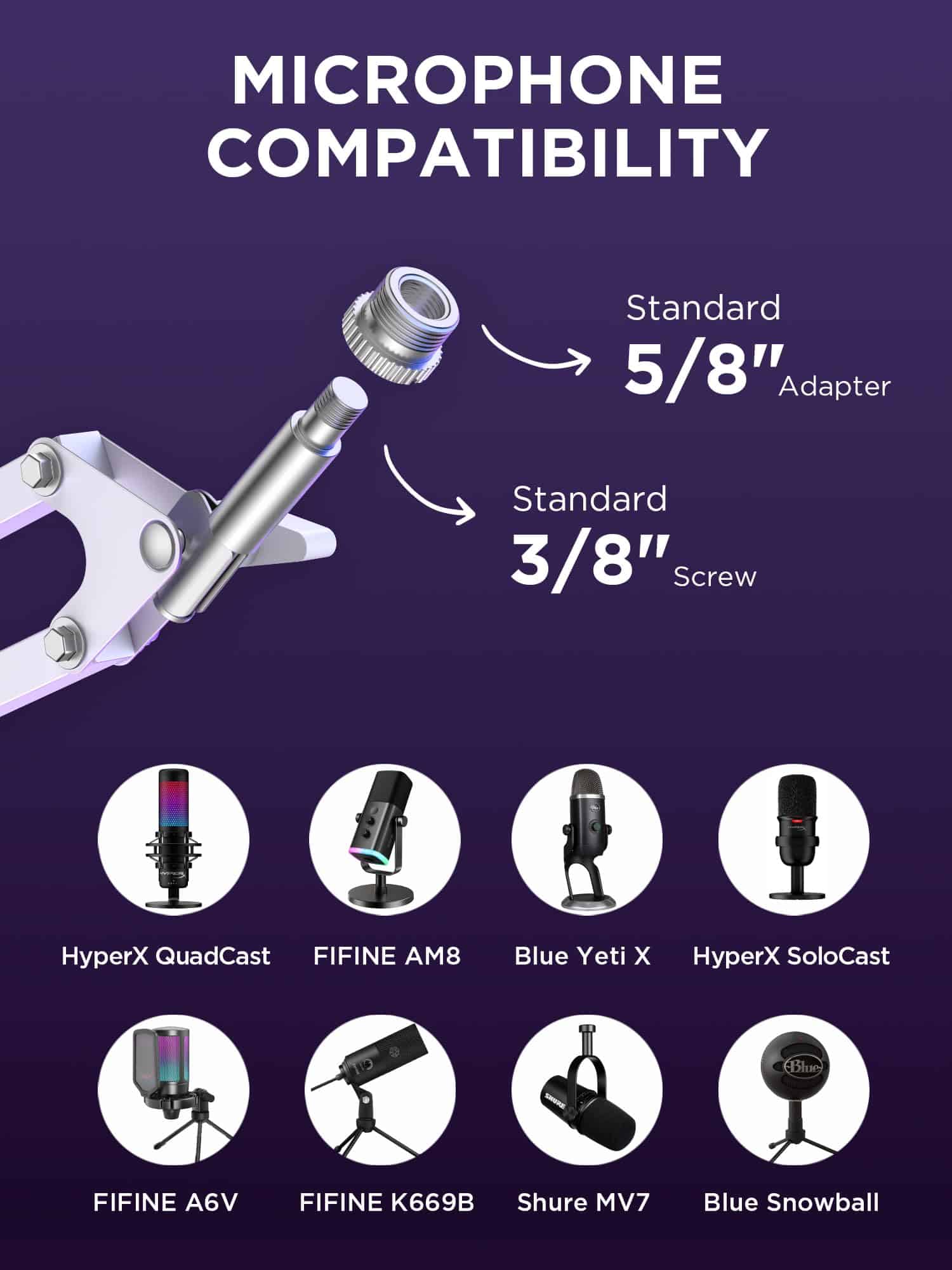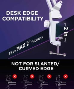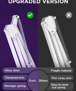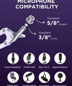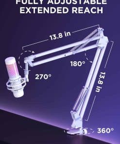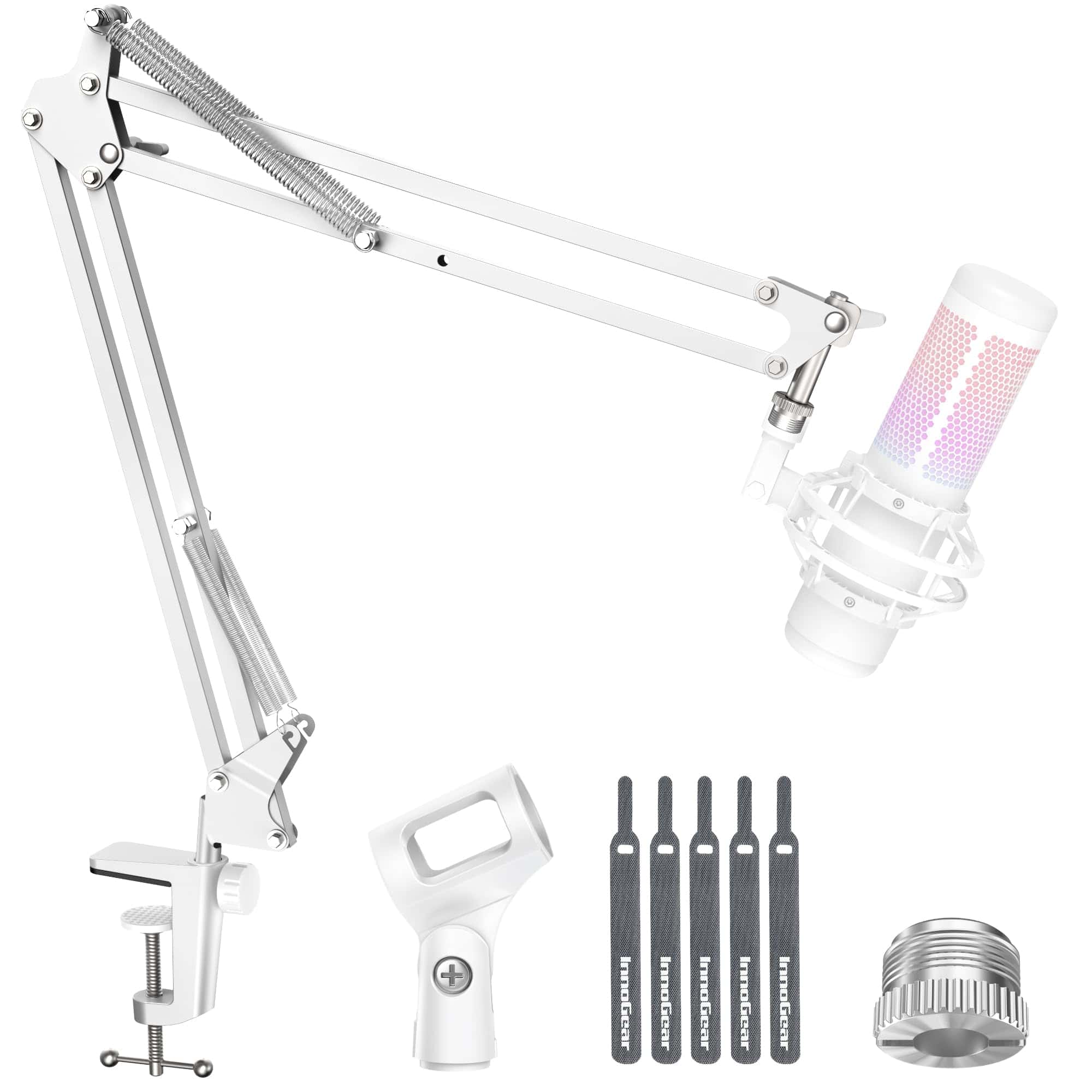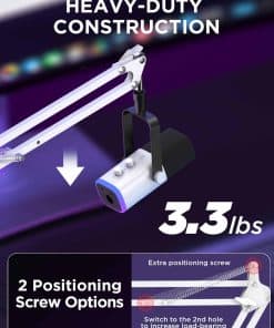 Soporte de brazo de micrófono InnoGear hecho de un marco de acero de alta calidad y un brazo plegable, es altamente adecuado para cualquier tienda, escenario, estudio, transmisiones, estaciones de televisión y demás. También puede doblarse hacia atrás y adelante en la base, fácil de transportar. Especificación: Carga máx: Aprox. 1.5kg Diámetro máximo del clip del micrófono: 1.1″/28mm Material: Acero Color: Negro Adecuado para: Blue Yeti, Yeti Pro, Yeti Nano, Yeti X, Blue Snowball iCE y Blue Snowball Audio-Technica AT2020, AT2020USB+, AT2035, ATR2500-USB y ATR2100-USB Fifine K669B & K669 Paquete Incluye: 1 Soporte de Brazo de Micrófono InnoGear 1 Rosca de 3/8″-5/8″ de InnoGear 1 Abrazadera de Montaje en Mesa de InnoGear 1 Clip de Micrófono de InnoGear