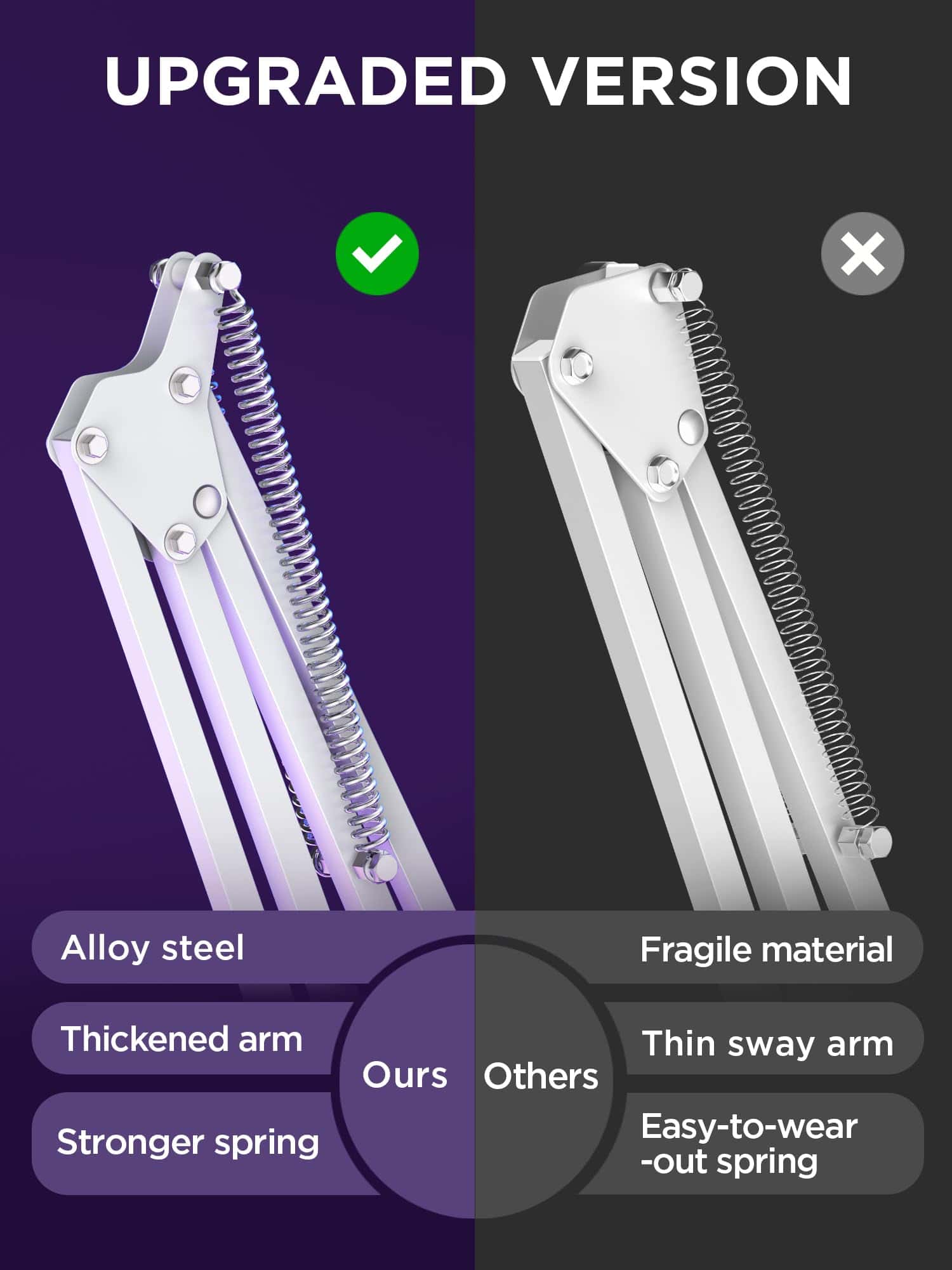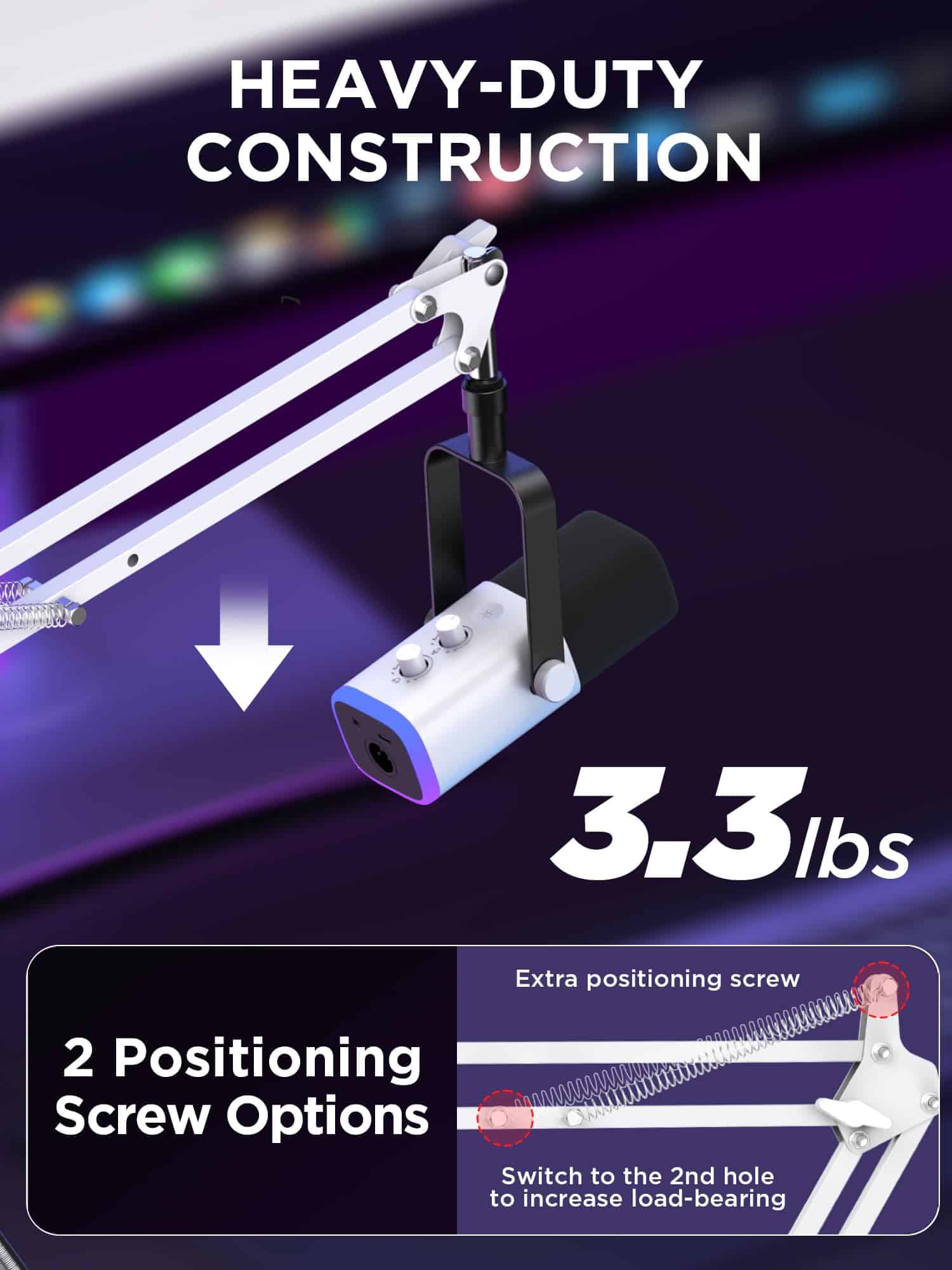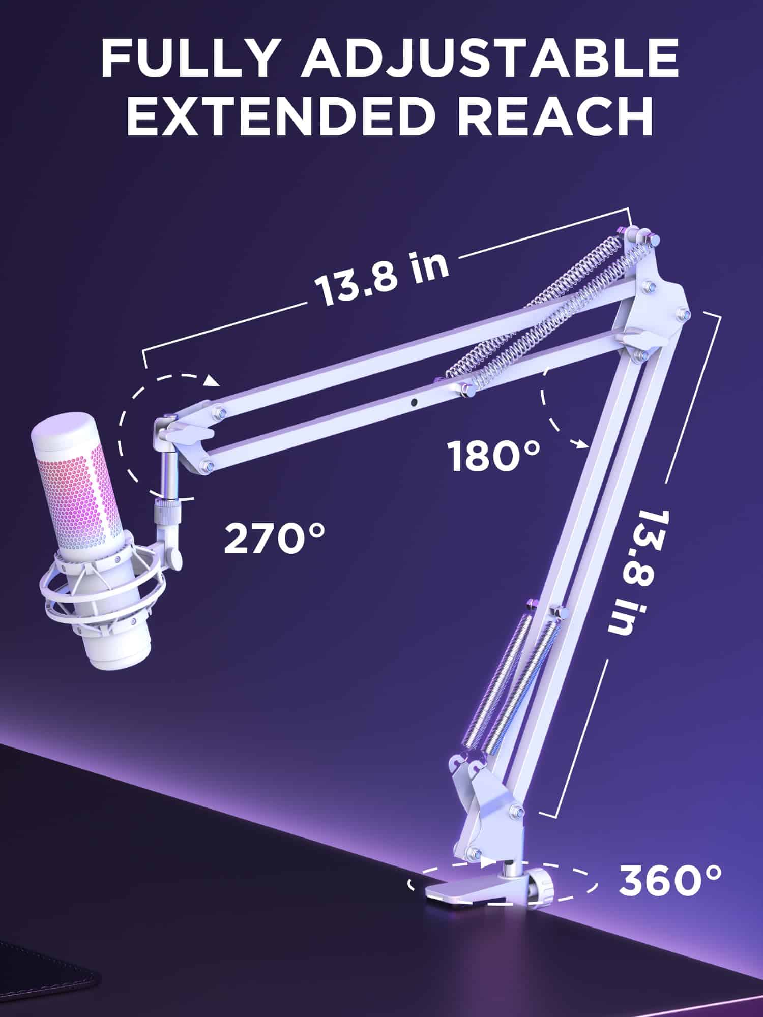 Soporte de brazo de micrófono InnoGear hecho de un marco de acero de alta calidad y un brazo plegable, es altamente adecuado para cualquier tienda, escenario, estudio, transmisiones, estaciones de televisión y demás. También puede doblarse hacia atrás y adelante en la base, fácil de transportar. Especificación: Carga máx: Aprox. 1.5kg Diámetro máximo del clip del micrófono: 1.1″/28mm Material: Acero Color: Negro Adecuado para: Blue Yeti, Yeti Pro, Yeti Nano, Yeti X, Blue Snowball iCE y Blue Snowball Audio-Technica AT2020, AT2020USB+, AT2035, ATR2500-USB y ATR2100-USB Fifine K669B & K669 Paquete Incluye: 1 Soporte de Brazo de Micrófono InnoGear 1 Rosca de 3/8″-5/8″ de InnoGear 1 Abrazadera de Montaje en Mesa de InnoGear 1 Clip de Micrófono de InnoGear