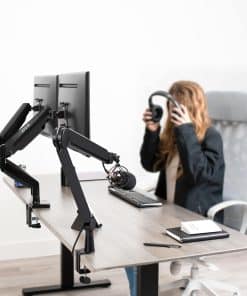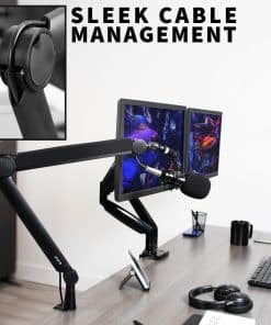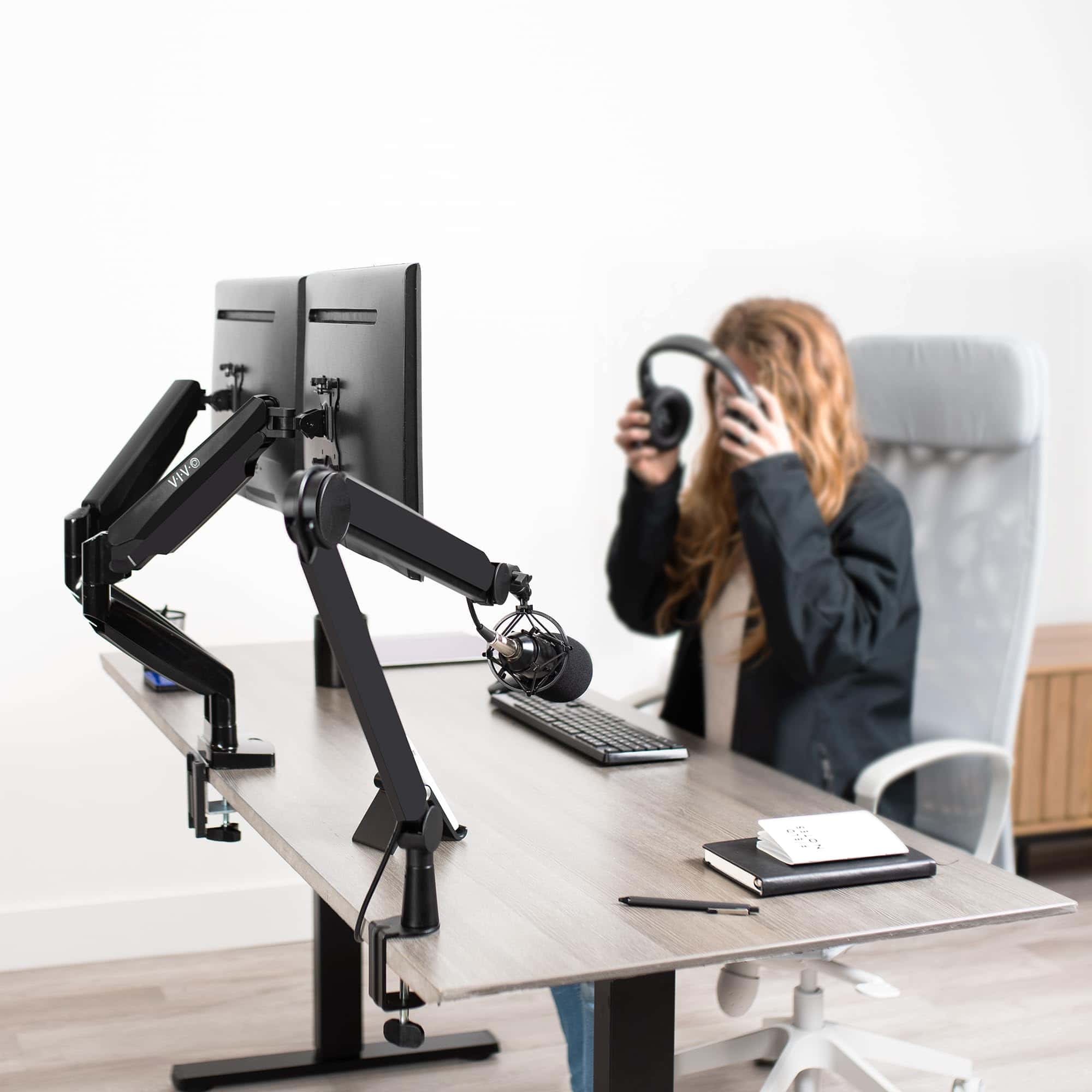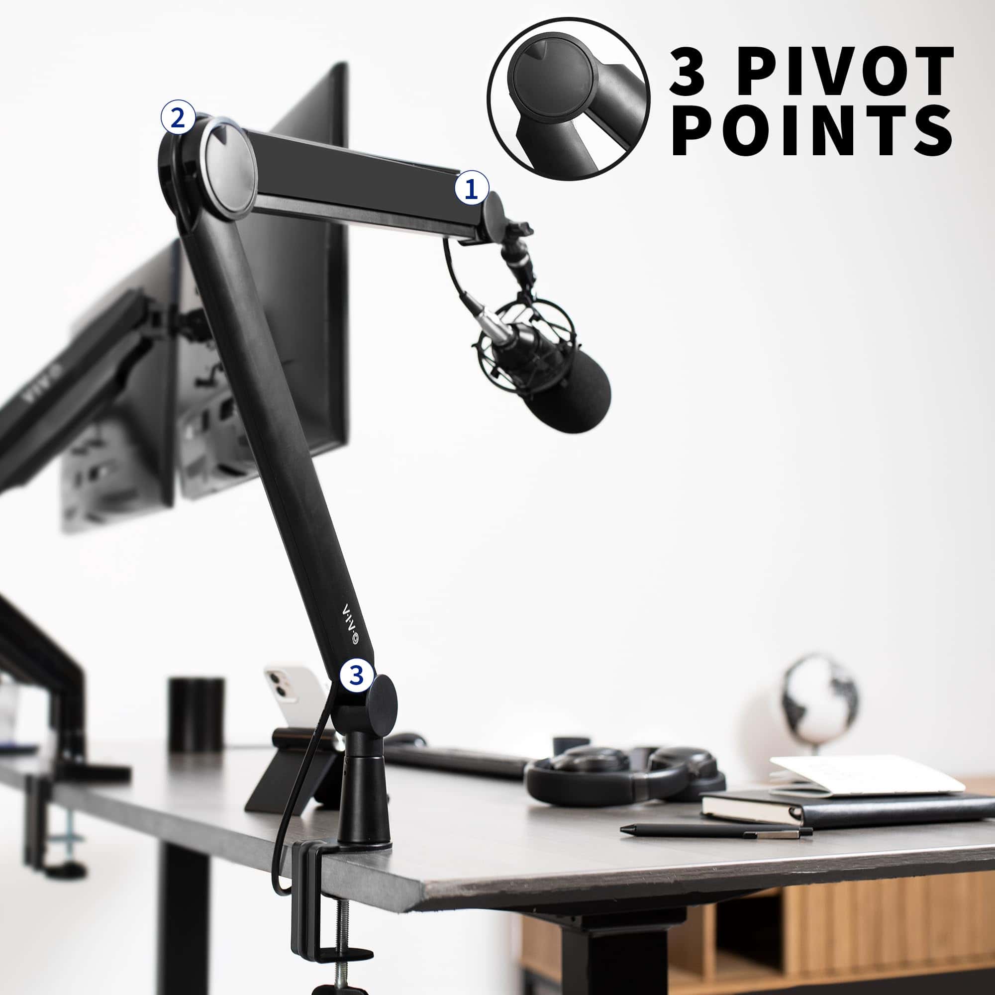 Soporte de brazo de micrófono premium VIVO para transmisiones/podcasts cuenta con un diseño resistente que se sujeta a escritorios de hasta 2.2 pulgadas de grosor para brindarte la mejor experiencia en transmisiones, grabaciones, podcasts, juegos, música y más! El brazo articulado cuenta con rotación de 360 grados y un mecanismo asistido por resorte que permite un movimiento fácil hacia arriba y hacia abajo para obtener una posición flexible. La extensión máxima alcanza los 33.5 pulgadas con 34 pulgadas de ajuste de altura. El clip para cables mantiene los cables fuera del camino para una apariencia limpia y organizada y ajustes sin obstáculos. El montaje es sencillo, simplemente fija este confiable soporte de micrófono a tu escritorio (de hasta 2.2 pulgadas de grosor) a través de una abrazadera en C resistente o un montaje de globo igualmente seguro, asegura tu micrófono compatible, ajusta la perilla de tensión ¡y está listo para usar! ¡Te tenemos cubierto! El diseño de acero y aluminio sólido está respaldado con una garantía del fabricante de 3 años y soporte técnico amigable para ayudar con cualquier pregunta o inquietud.