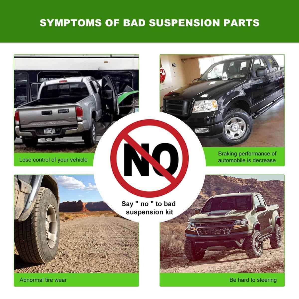5. CALIDAD PREMIUM SCITOO Auto Parts selecciona material de calidad premium para ayudar a garantizar calidad y durabilidad. Proveemos kits de suspensión para AUTOMÓVILES, SUV, CAMIONES, REMOLQUES. Asegúrese de que su vehículo coincida con este kit antes de comprarlo. Seleccione su vehículo (Año/Marca/Modelo/Variante) en la página para confirmar la compatibilidad, o vea los vehículos compatibles en la descripción.