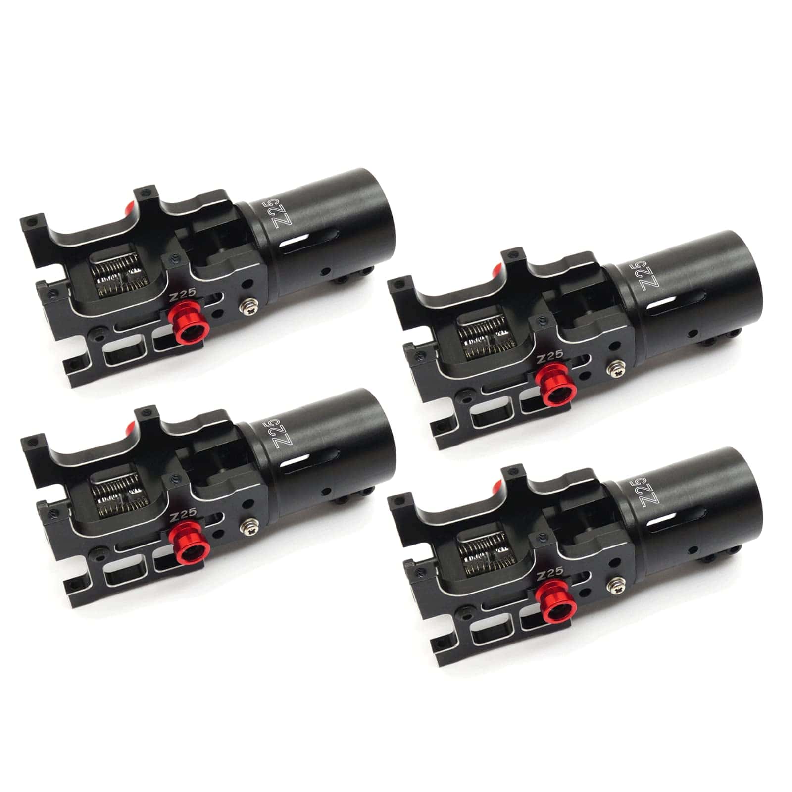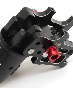 El soporte Z25 V3 es un ejemplo de CNC de alta calidad con componentes de aluminio, acero inoxidable y latón. Todos los componentes de aluminio en el soporte están anodizados en negro. Cada soporte está mecanizado con tolerancias ajustadas sin holgura. Una simple tirada de la palanca roja permite plegar el tubo o brazo montado en la posición más baja. Un tornillo de mariposa incluido proporciona mayor seguridad en las posiciones de brazo superiores o inferiores.