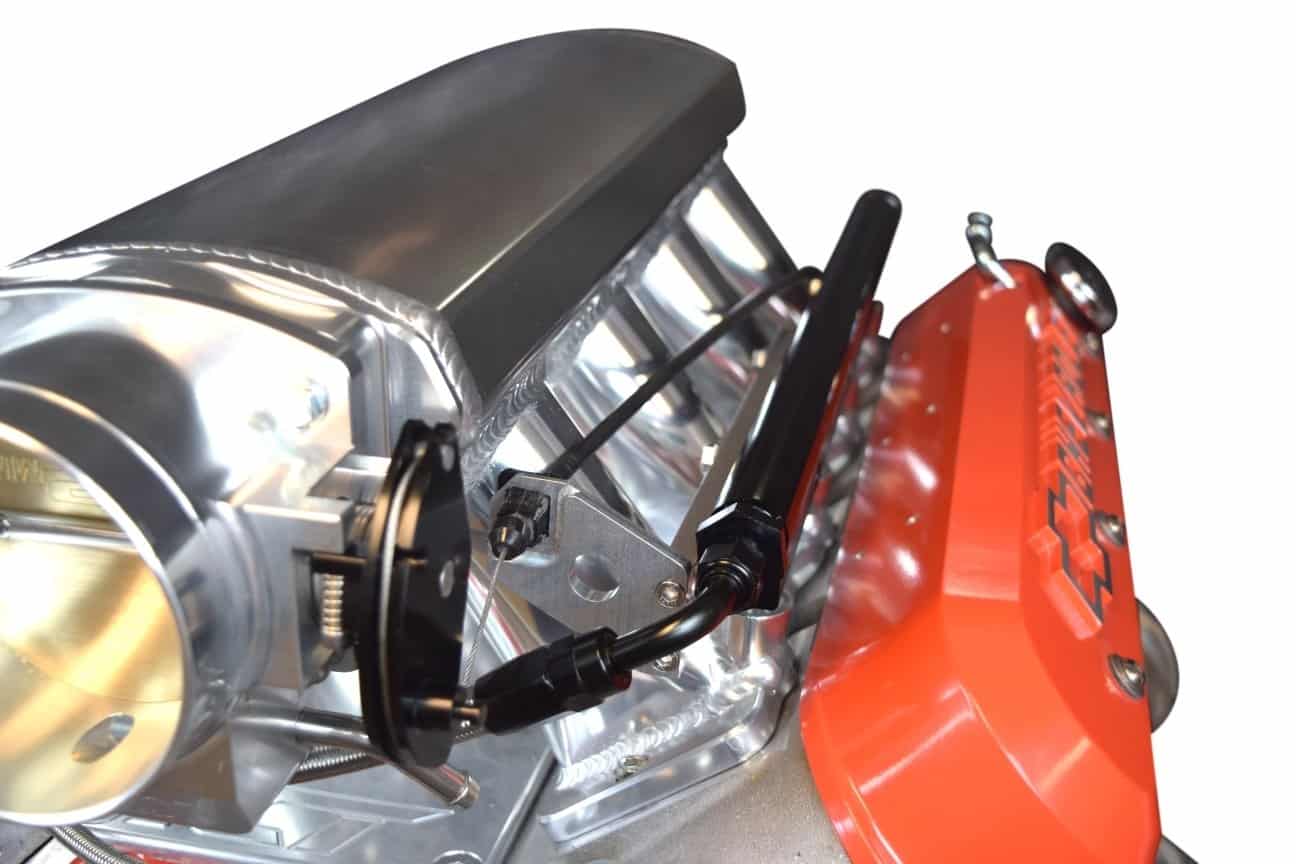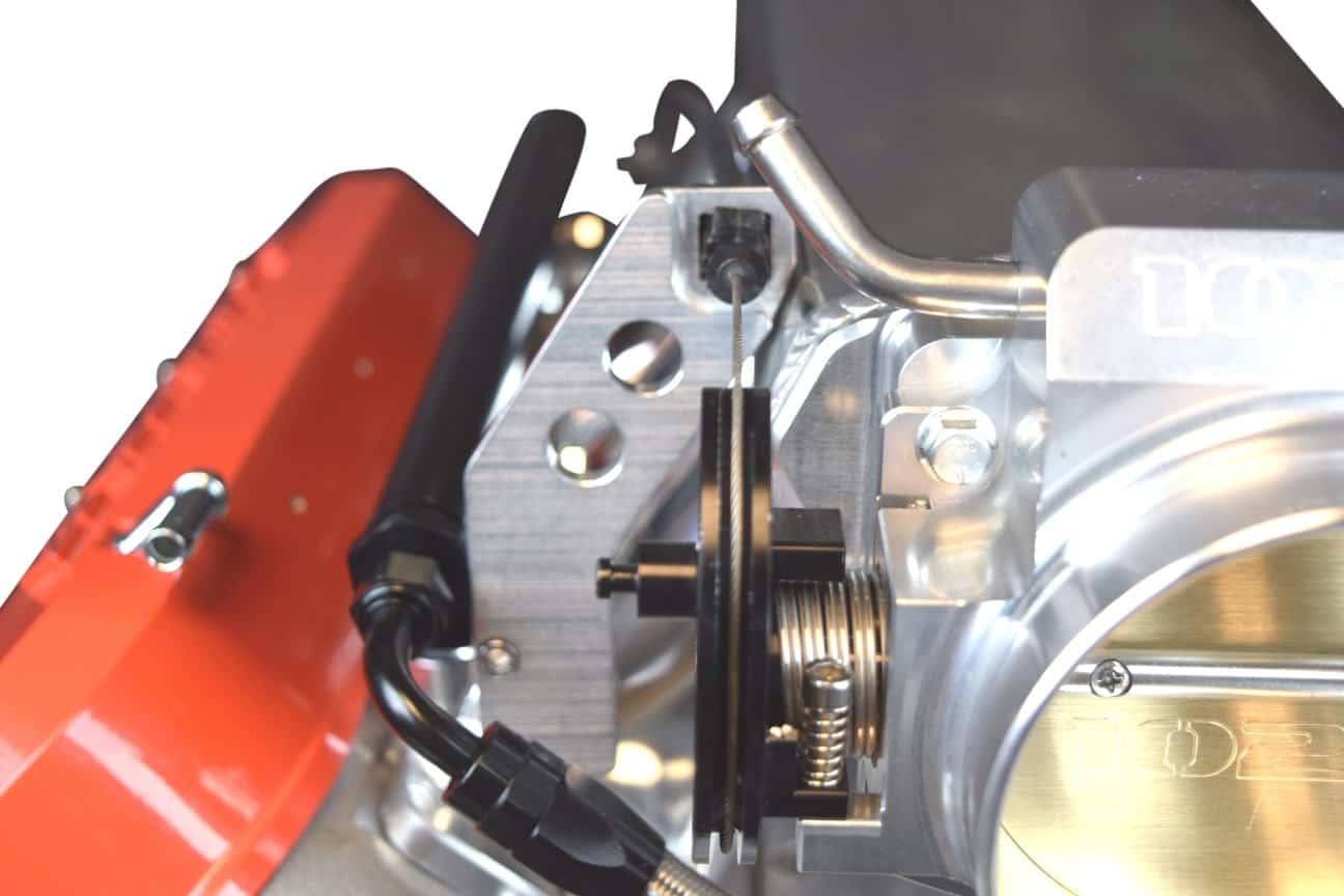 Permite la colocación estándar del cuerpo del acelerador, o la colocación invertida del cuerpo del acelerador para ganar más espacio bajo el capó