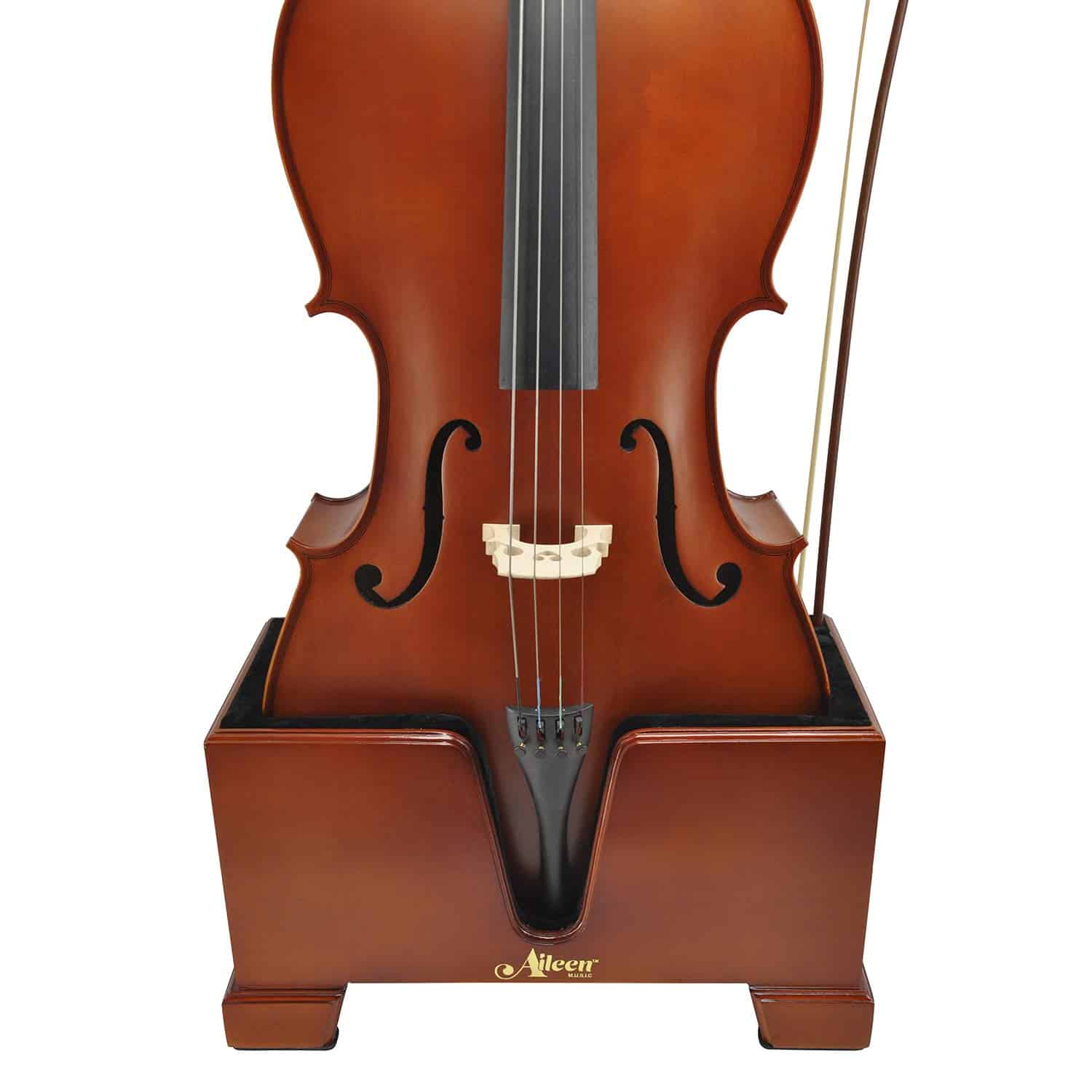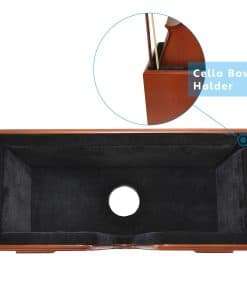 Soporte de caja de violonchelo de madera color burdeos de tamaño completo Aileen STC02 4/4 con interior de terciopelo negro premium y sostenedor de arco incluido con alfombrilla antideslizante. Ideal para mantener su violonchelo de forma segura y exhibirlo de manera elegante.