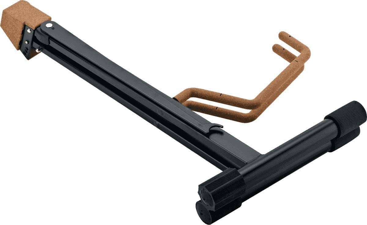 Este soporte de cello plegable de forma compacta es un excelente soporte para usar en la carretera o en casa. Se ve bien y guarda su cello de forma segura hasta su próxima actuación. Las superficies que entran en contacto con el instrumento están cubiertas con un atractivo material de goma/corcho para proteger su instrumento. Hay tres ajustes diferentes de ancho para el cuerpo del instrumento. Los tapones ajustables protegen el suelo y garantizan que el soporte sea estable. El útil soporte para arco se puede plegar para facilitar el transporte.