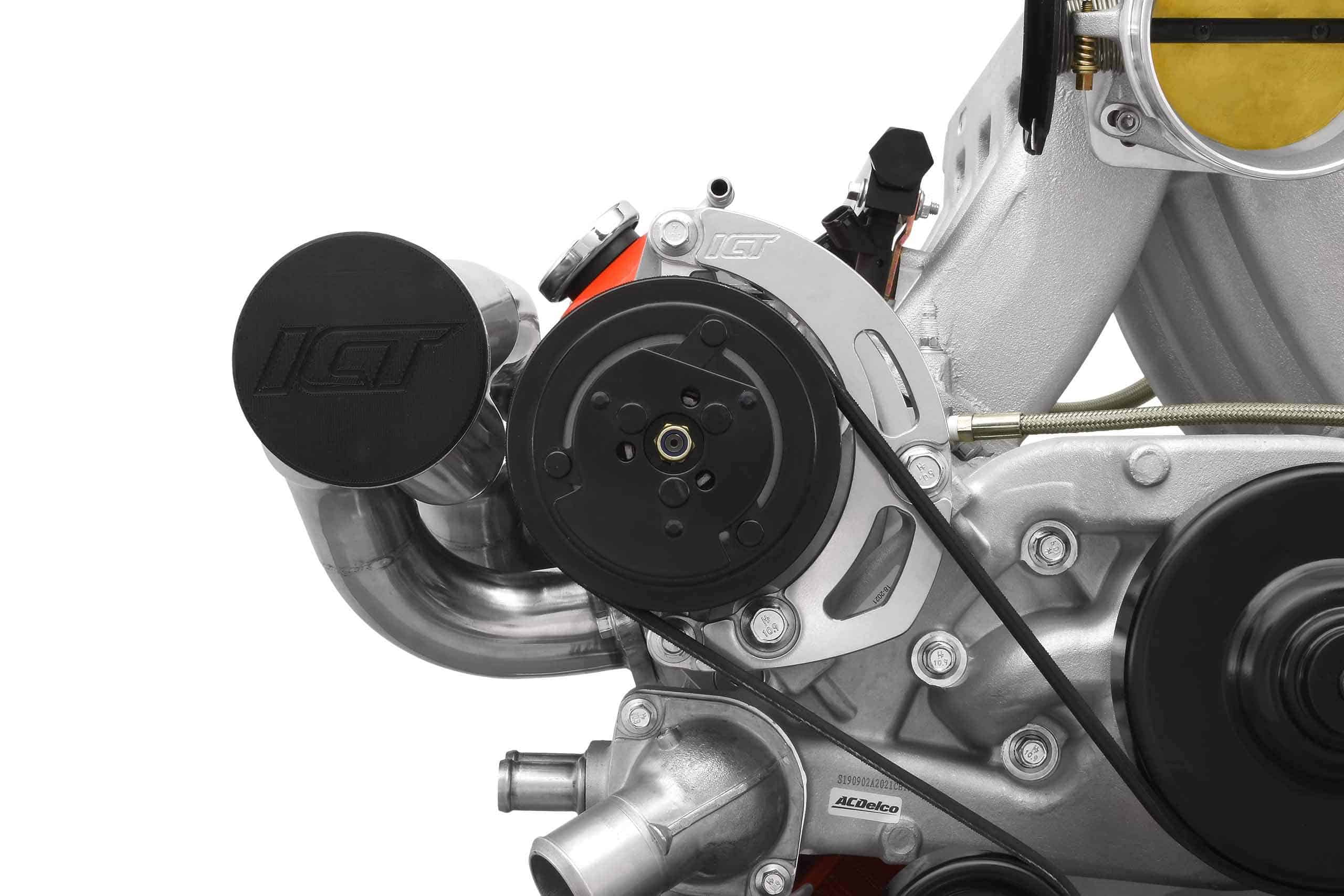 1. Monta un compresor Sanden 7176 justo delante de la cabeza del cilindro del pasajero para proporcionar más espacio al lado de la cabeza del cilindro. Ideal para configuraciones de turbo.