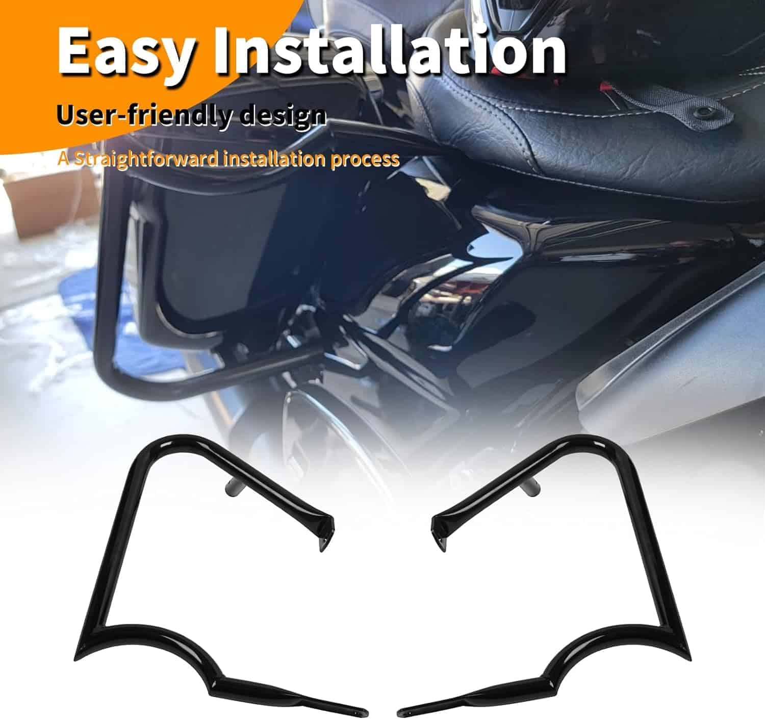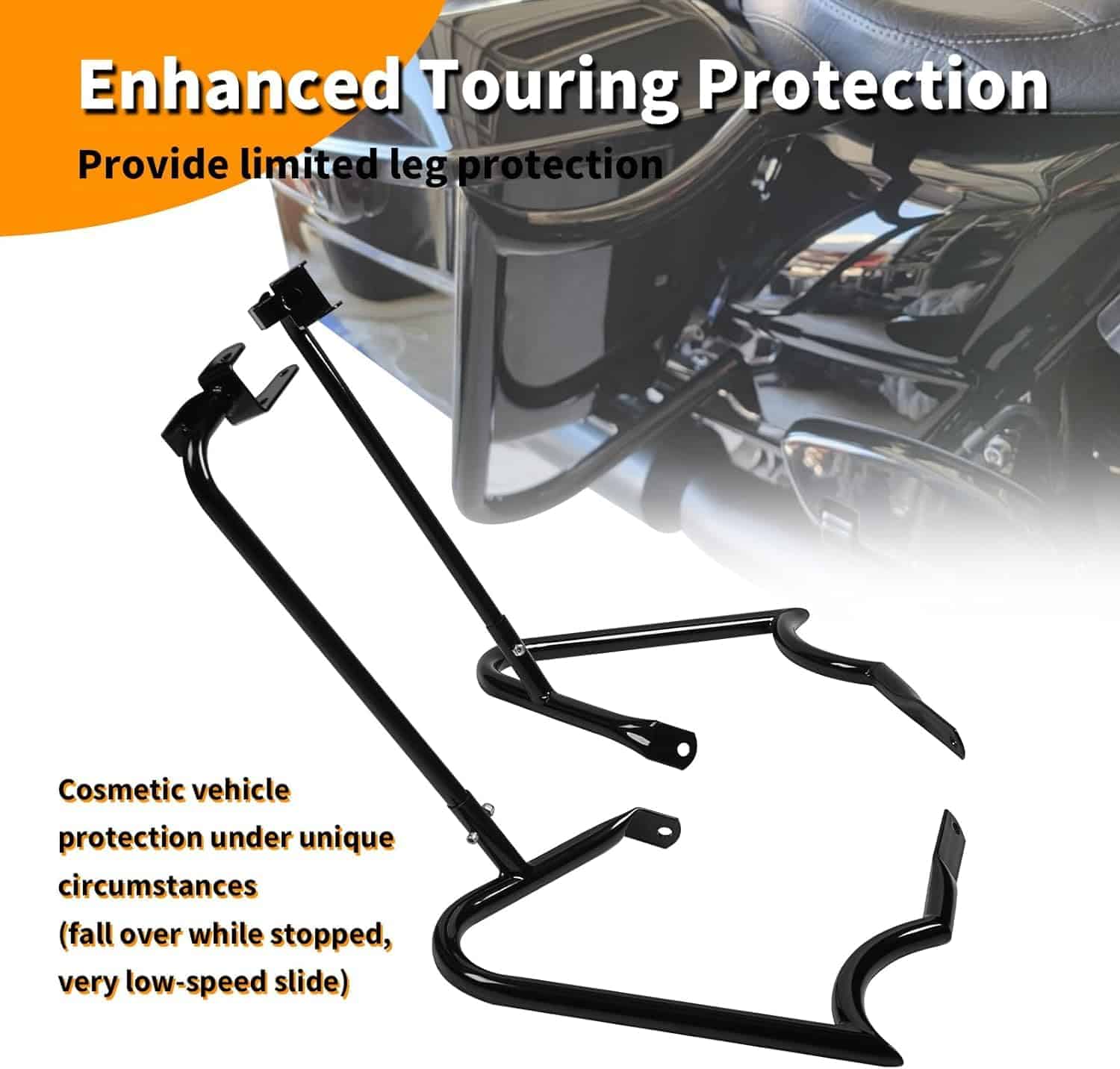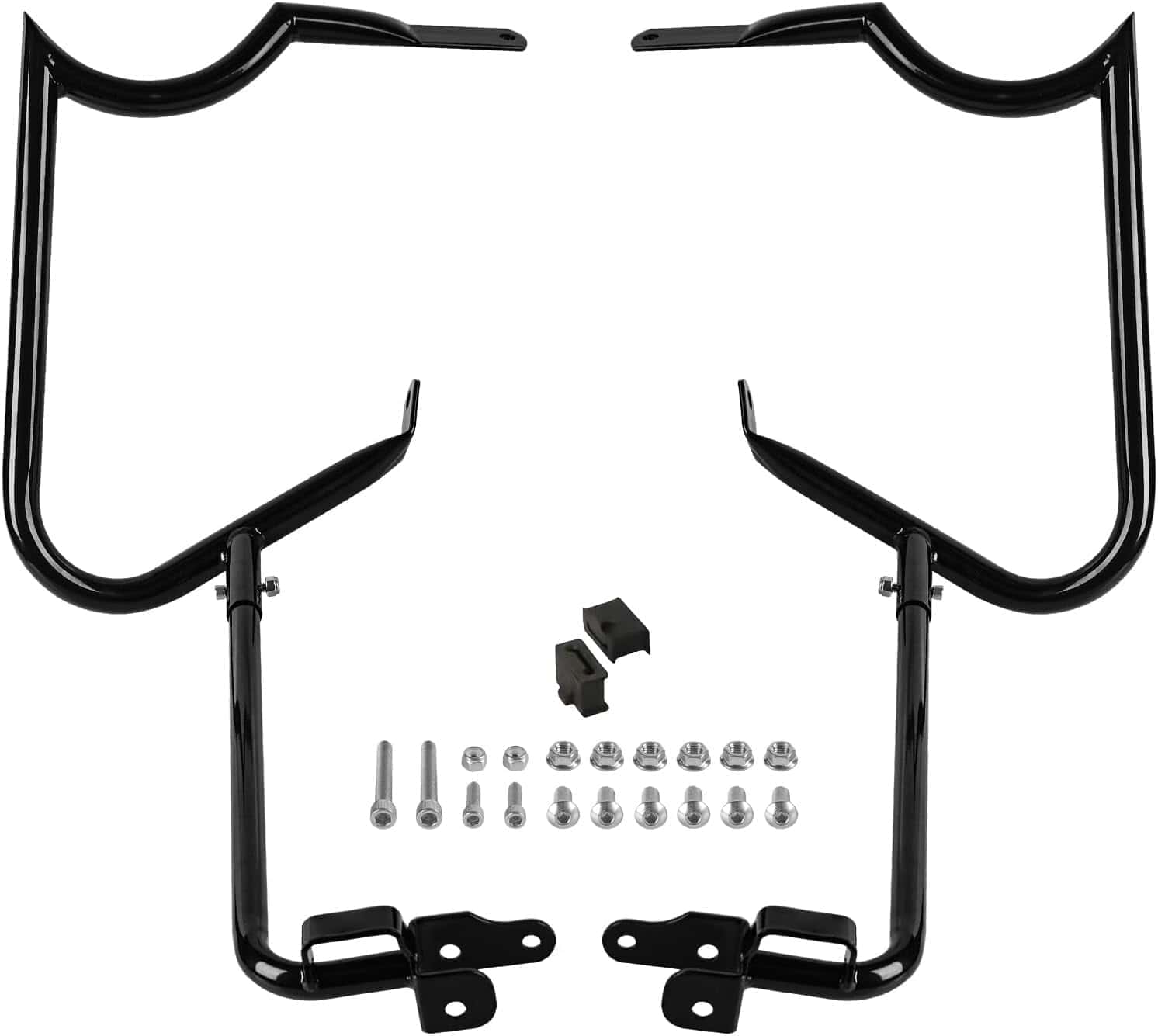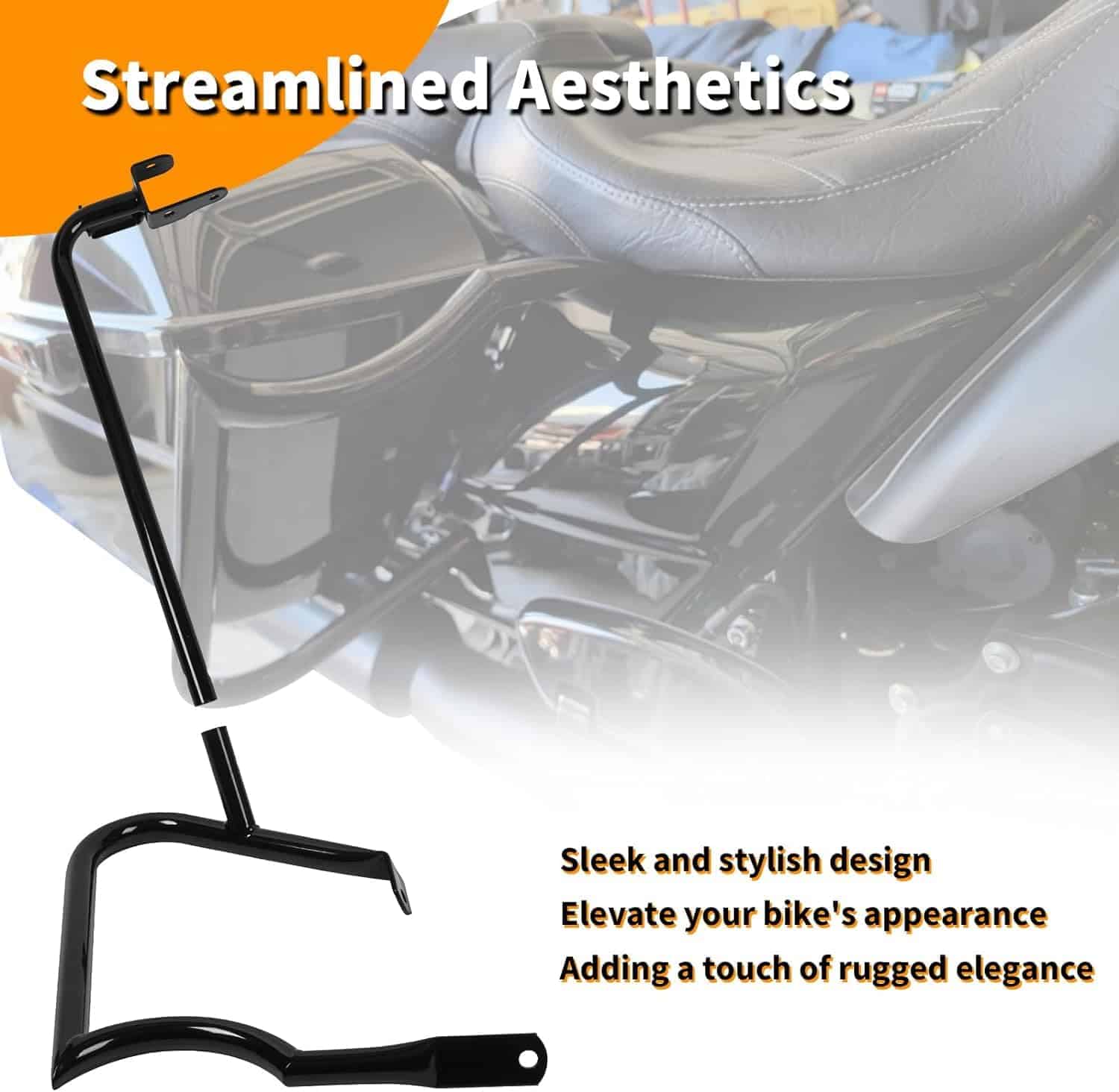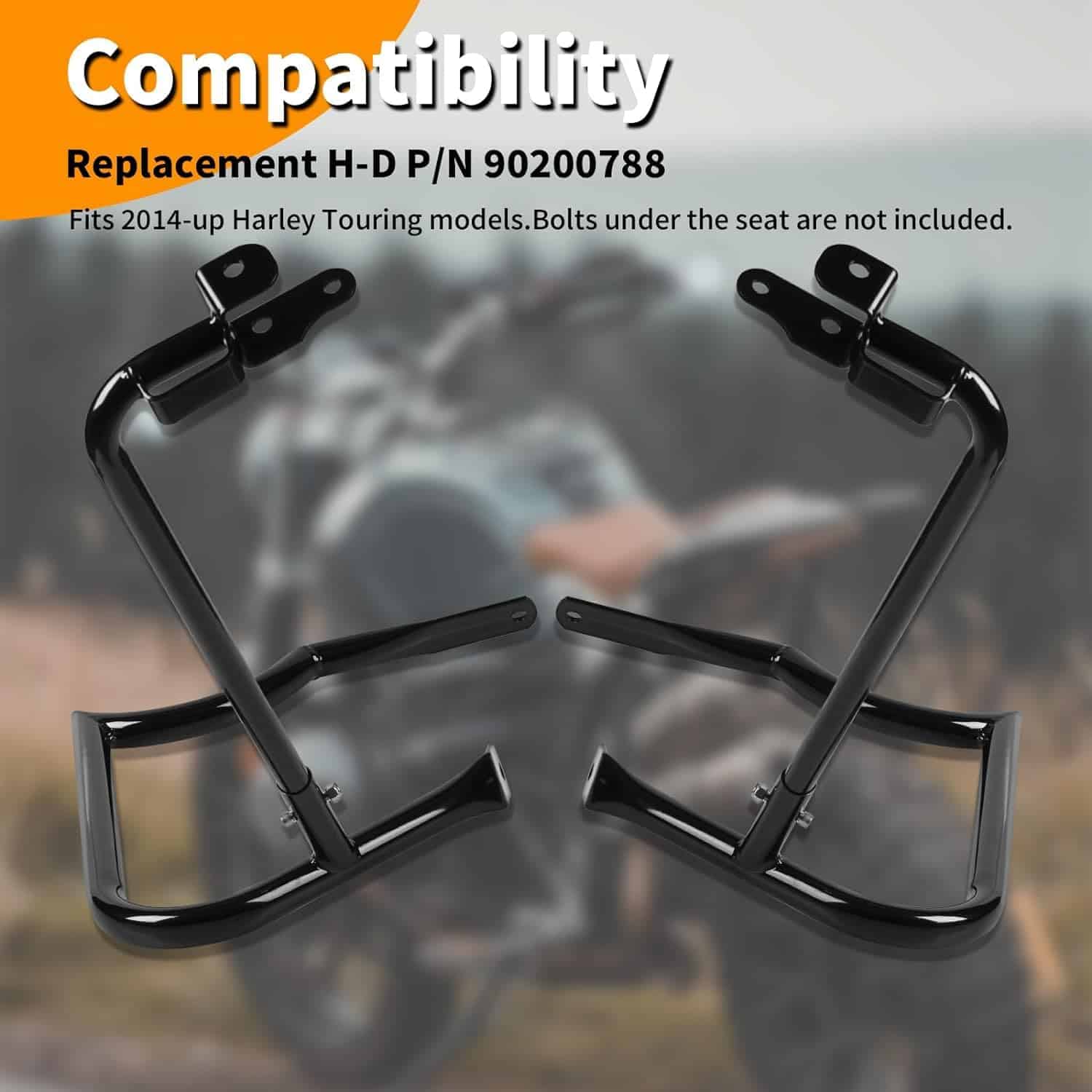 AJUSTE: Soporte de defensa para alforjas negras compatible con modelos Harley Davidson Touring ’14-2024.