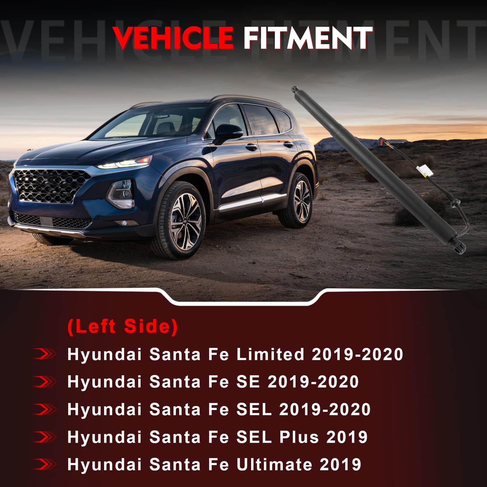 2. Modelos compatibles: Este soporte de elevación de portón trasero izquierdo 1831S1100 es compatible con Hyundai Santa Fe Limited 2019-2020, Santa Fe SE 2019-2020, Santa Fe SEL 2019-2020, Santa Fe SEL Plus 2019, Santa Fe Ultimate 2019, Lado izquierdo del portón trasero.