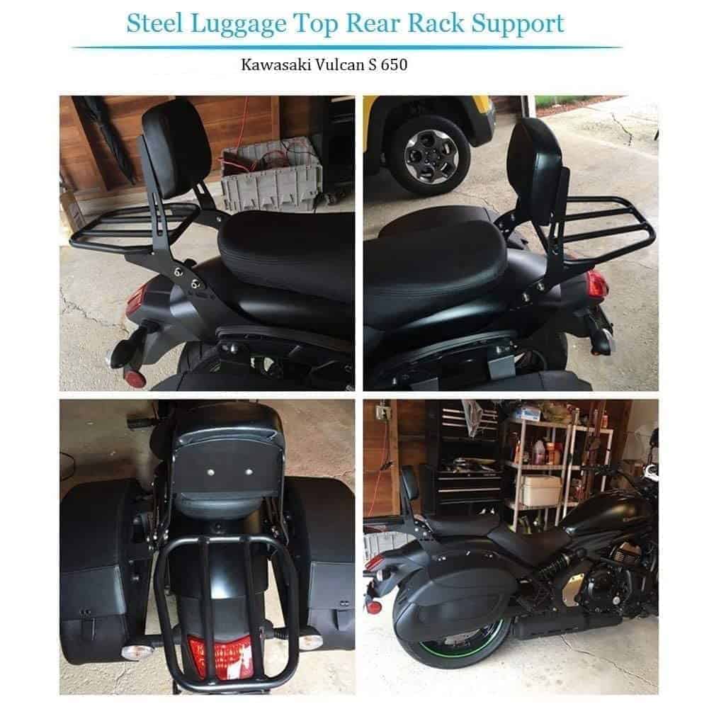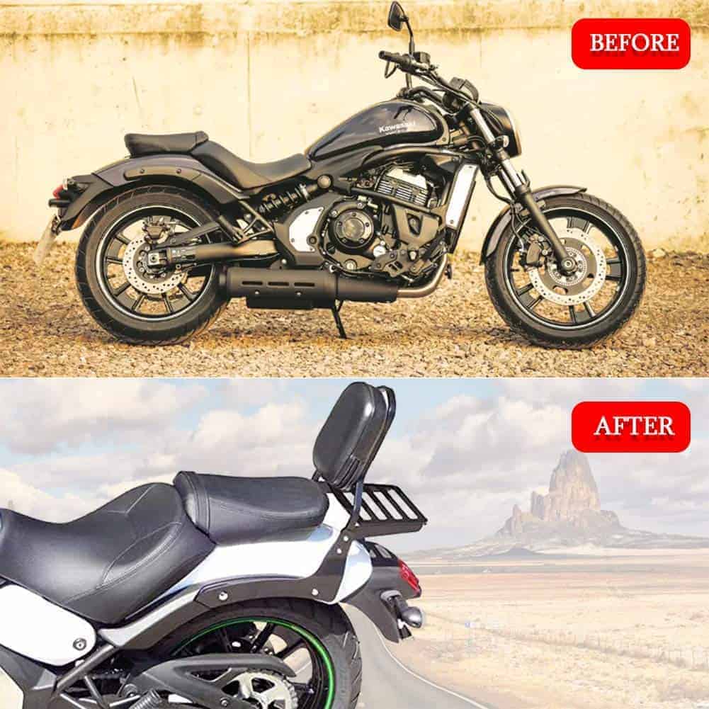 Función: Diseño especial, puede mejorar la apariencia de tu motor EN650, haciéndolo más fresco y único. La almohadilla de cojín en la parte trasera te mantiene cómodo en los largos viajes por carretera. La extensión del estante de equipaje es adaptable, se pueden colocar más artículos en él. Hay un estante con resorte que se pliega detrás del respaldo y se puede subir cuando no está en uso. Así que no ocupará espacio.
