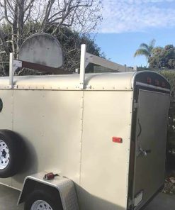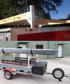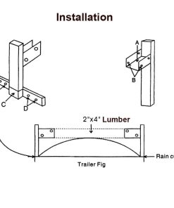 Coloque madera de 2″ x 4″ (no incluida) en los soportes para actuar como travesaños para un soporte de escalera personalizado de cualquier ancho de remolque (de 4′ a 8-1/2′ de ancho).