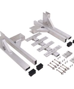 Este kit de soporte para escalera de techo está hecho de aluminio extruido y viene con hardware de acero inoxidable.