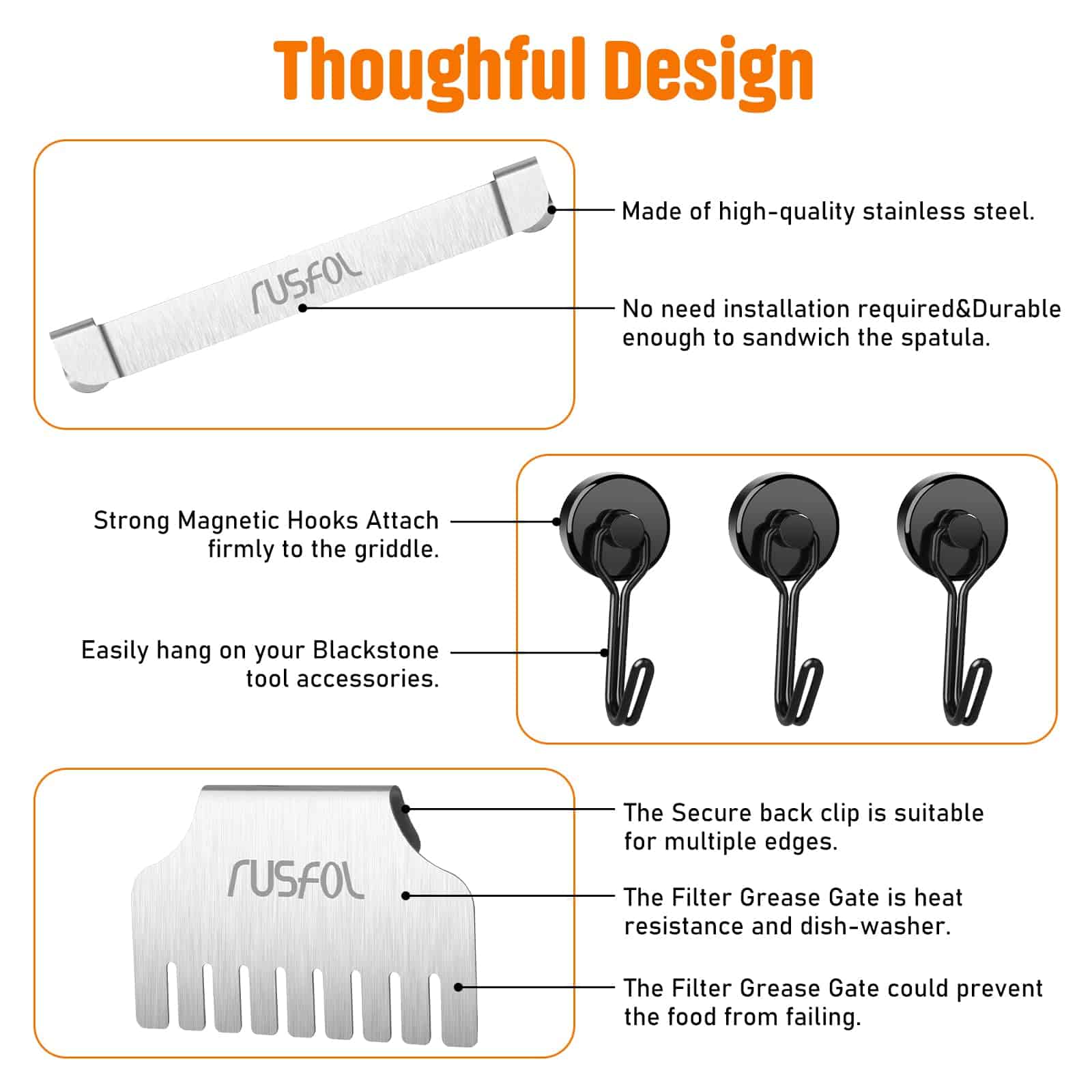 Soporte de espátula de plancha de acero inoxidable RUSFOL 3
