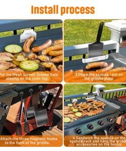 Simplifica la limpieza de tu barbacoa con nuestro set de bandeja de grasa 3 EN 1 sin estrés. Obtendrás 1 x Bandeja recolectora de grasa con trampa de grasa de pantalla de malla de acero inoxidable, 10 x Forro de bandeja de goteo de aluminio y 1 x Puerta de grasa que bloquea que los alimentos caigan en la bandeja de grasa trasera.