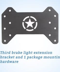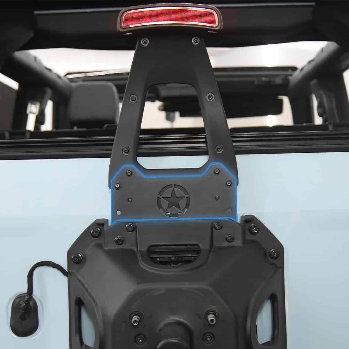 El soporte de extensión para la tercera luz de freno levanta la luz de freno original de Bronco por encima del neumático de repuesto más grande para una mayor visibilidad y seguridad. Fabricado en acero de carbono de alta calidad con recubrimiento en polvo negro mate. Fácil de instalar, se ajusta exactamente al diseño original, eliminando la necesidad de perforar adicionalmente. Incluye hardware de instalación y garantía de servicio postventa de 1 año.