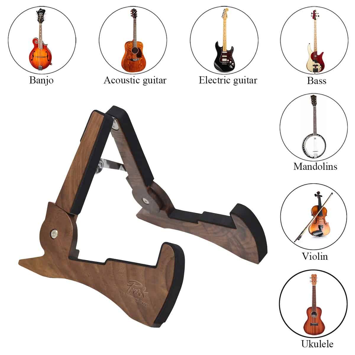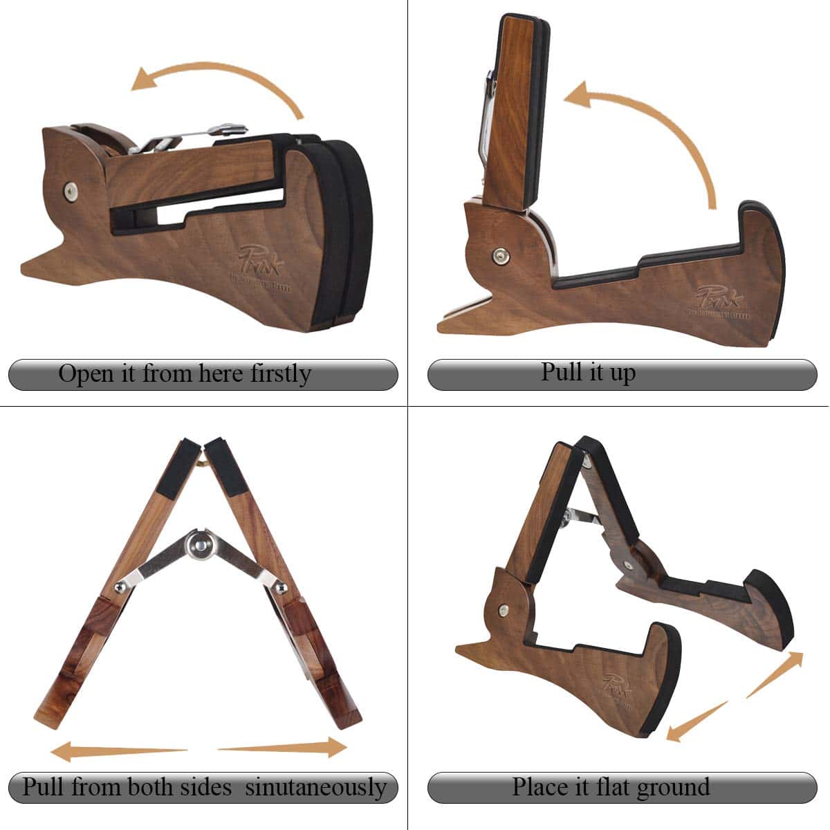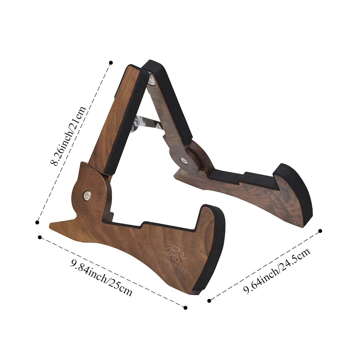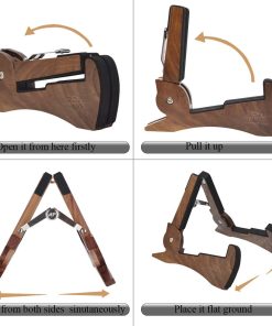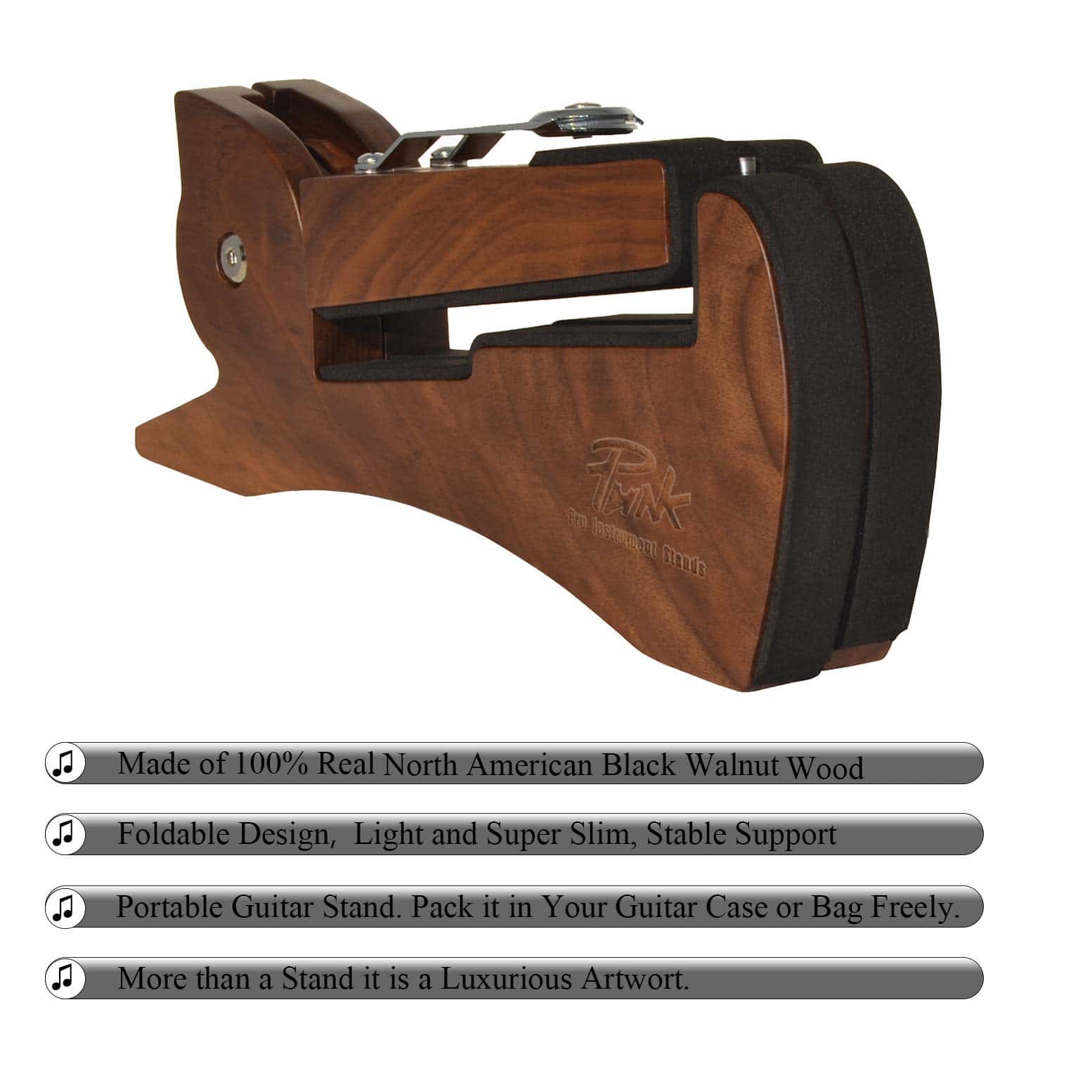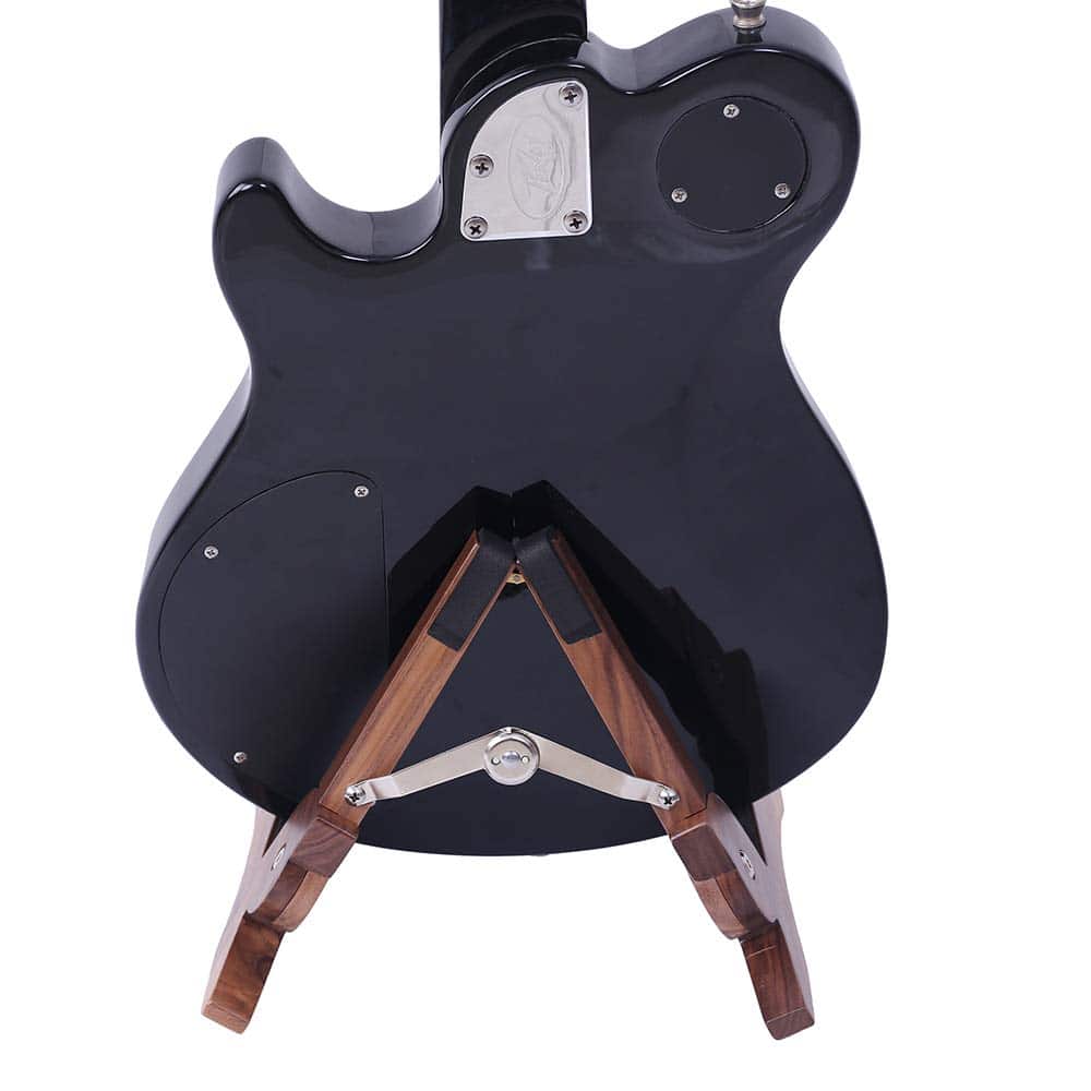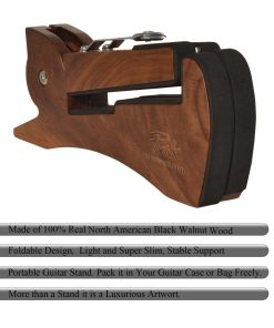 Este soporte de guitarra está fabricado con madera de nogal negro real. Puntos de contacto especiales de EVA, a prueba de rasguños y antideslizante, pueden proteger la guitarra de manera muy efectiva.