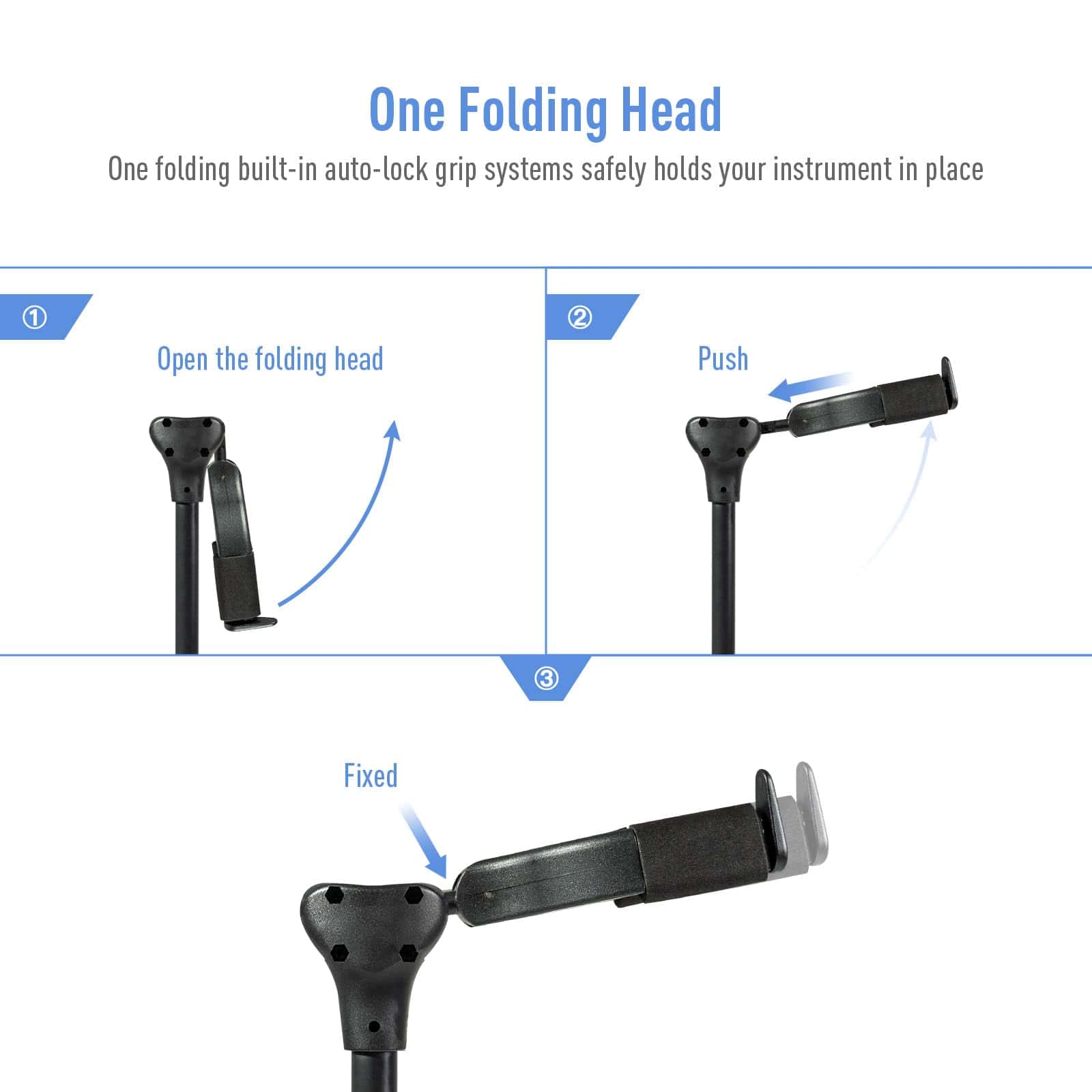 4. Ajustable en Altura: Altura ajustable de 19″ a 33″ entre las horquillas superior e inferior para adaptarse a muchos tipos de instrumentos.