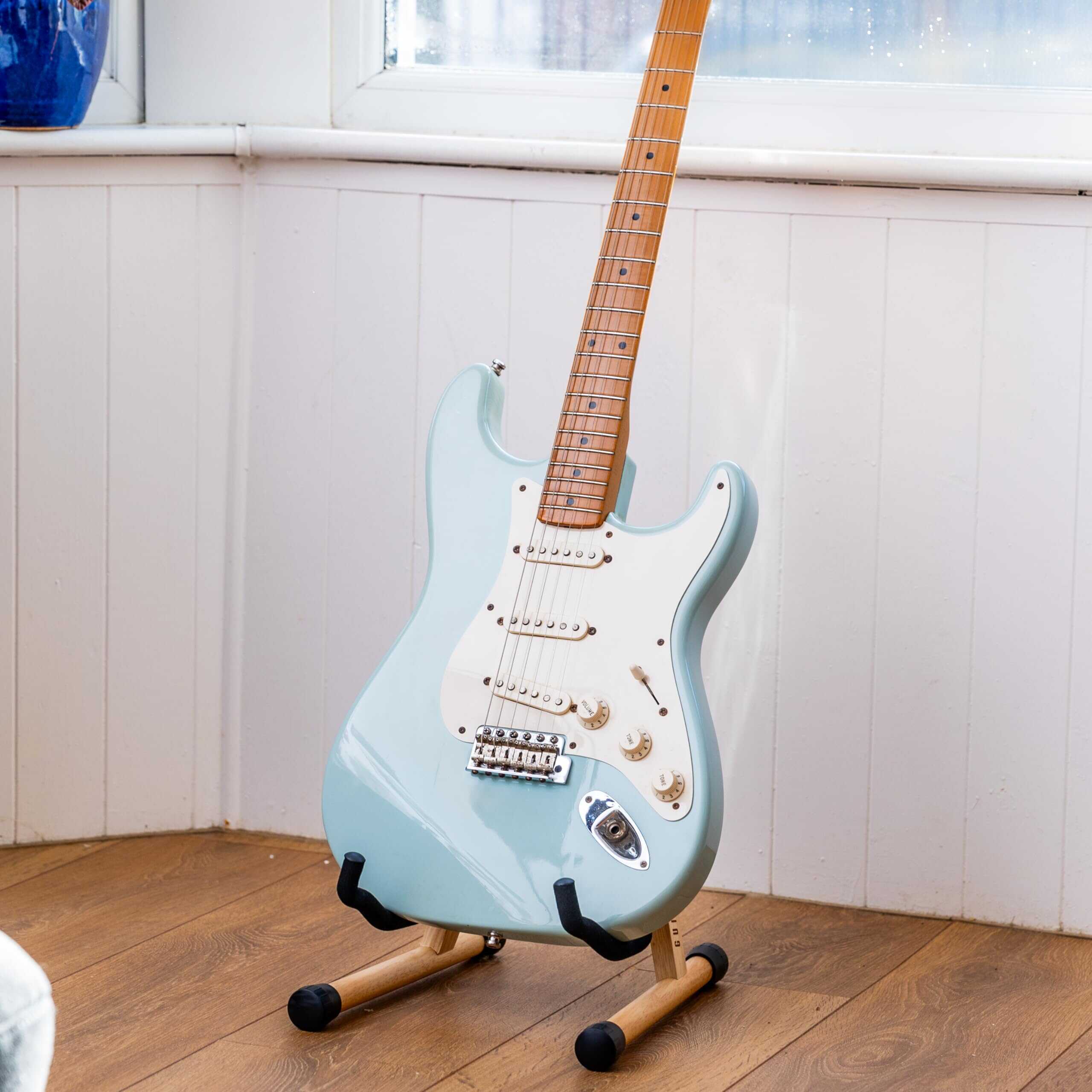 1. Soporte de guitarra de roble premium: Fabricado con madera de roble de alta calidad, este soporte de guitarra de madera es duradero y está construido para durar. Ofrece estilo y practicidad y es un gran soporte de guitarra eléctrica y acústica.