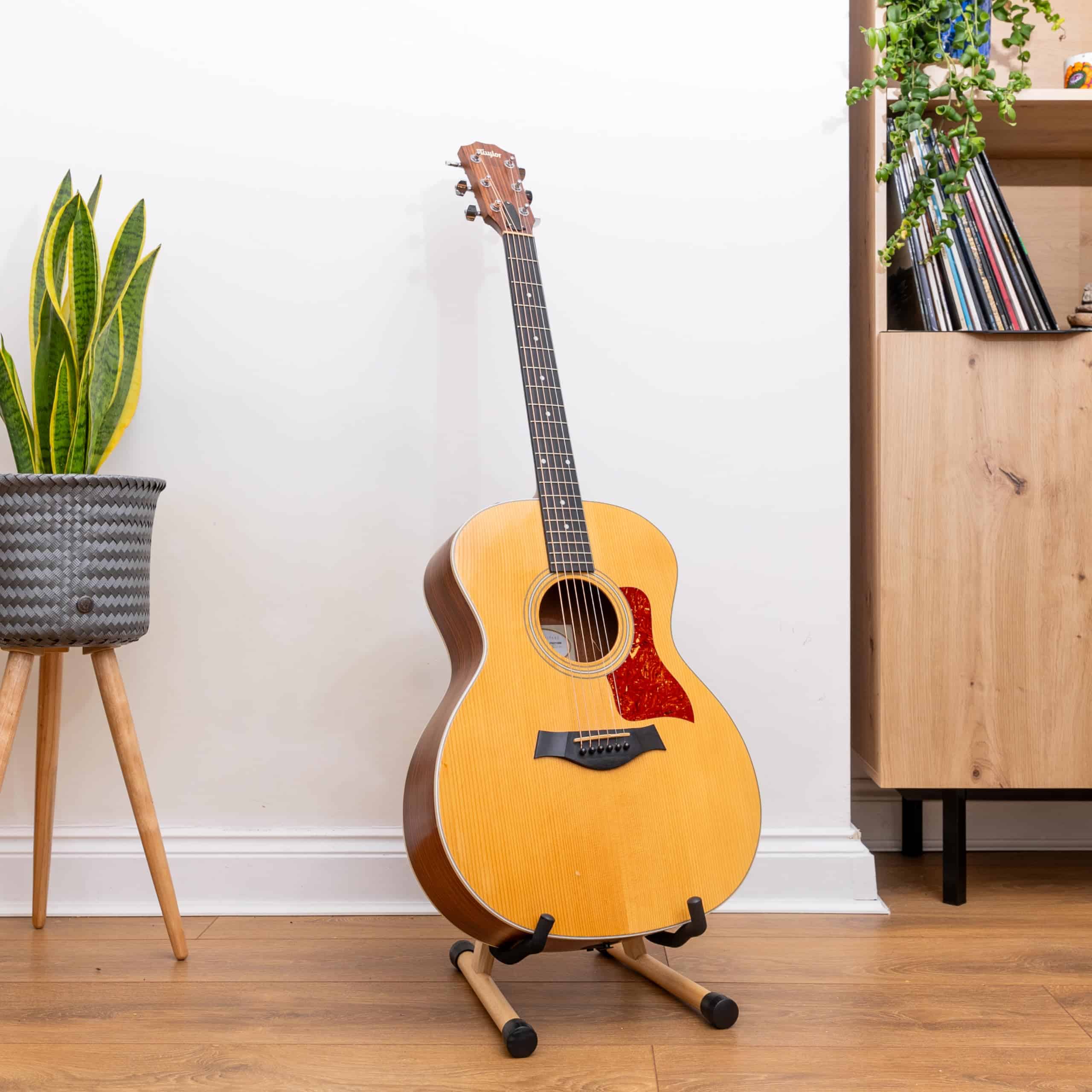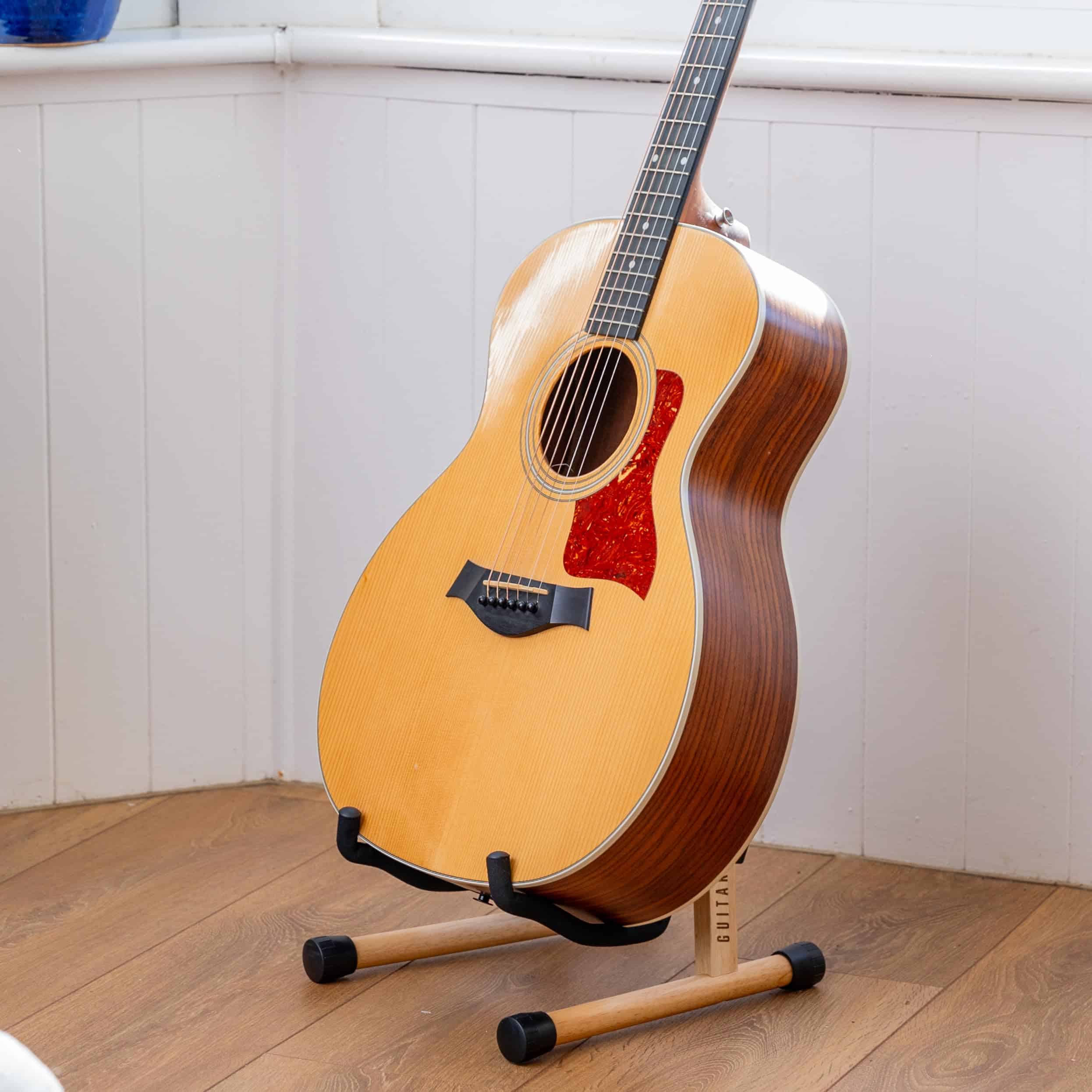 2. Diseño universal en forma de A: Este soporte de guitarra individual está diseñado para estar en el suelo, proporcionando una base sólida y estable para tu guitarra evitando que se desplace o se deslice mientras está en exhibición.