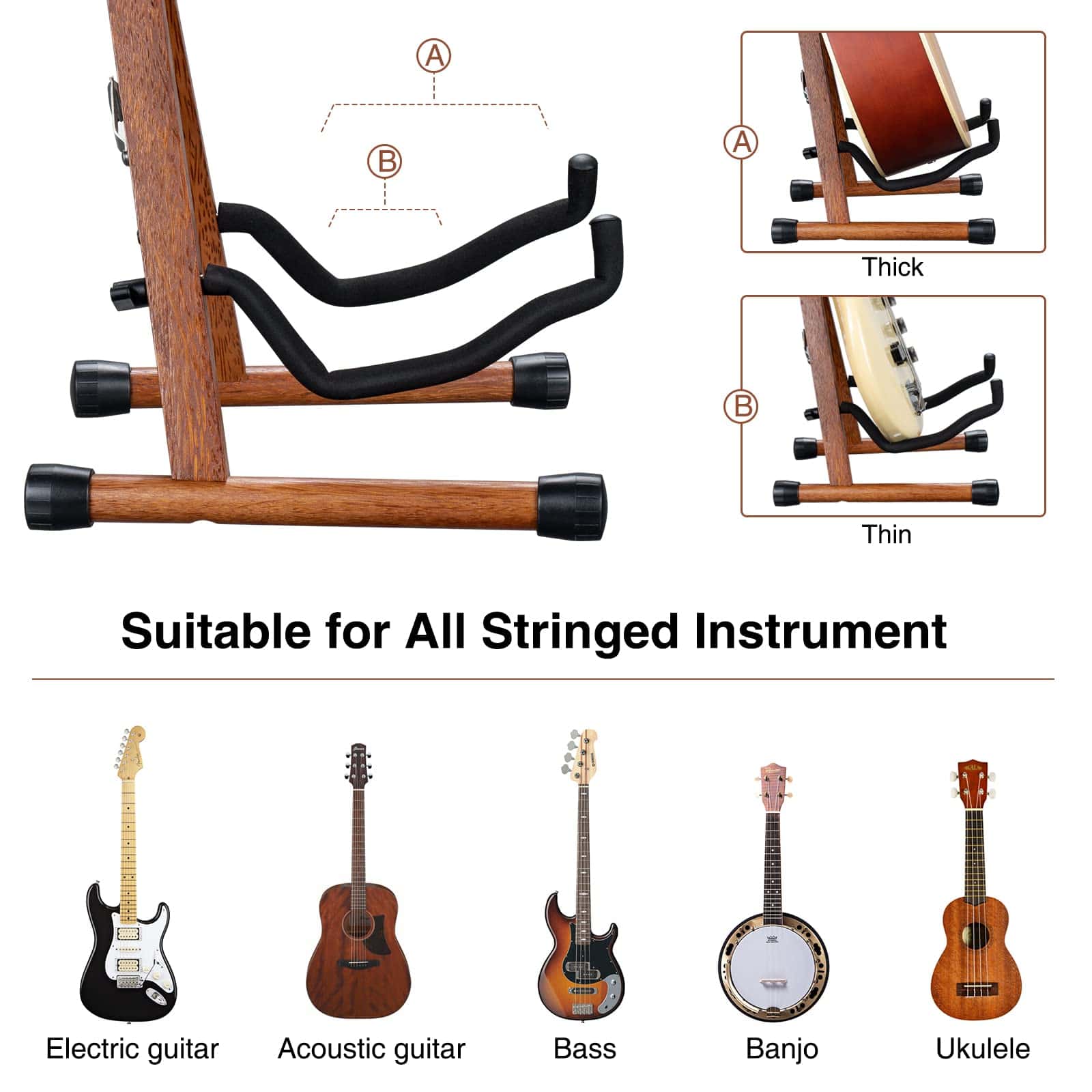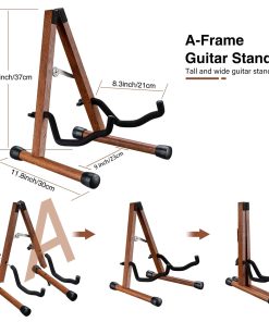 3. UNIVERSAL: Este soporte de guitarra de madera real puede sostener todos los instrumentos. Los brazos de la cuna de este soporte de guitarra en forma de A se pueden ajustar hasta 9 pulgadas (23 cm) de ancho, y la altura del soporte de guitarra de suelo es de 14.5 pulgadas (37 cm), funciona bien como soporte de guitarra universal, como acústica, eléctrica, bajo, banjo, etc.