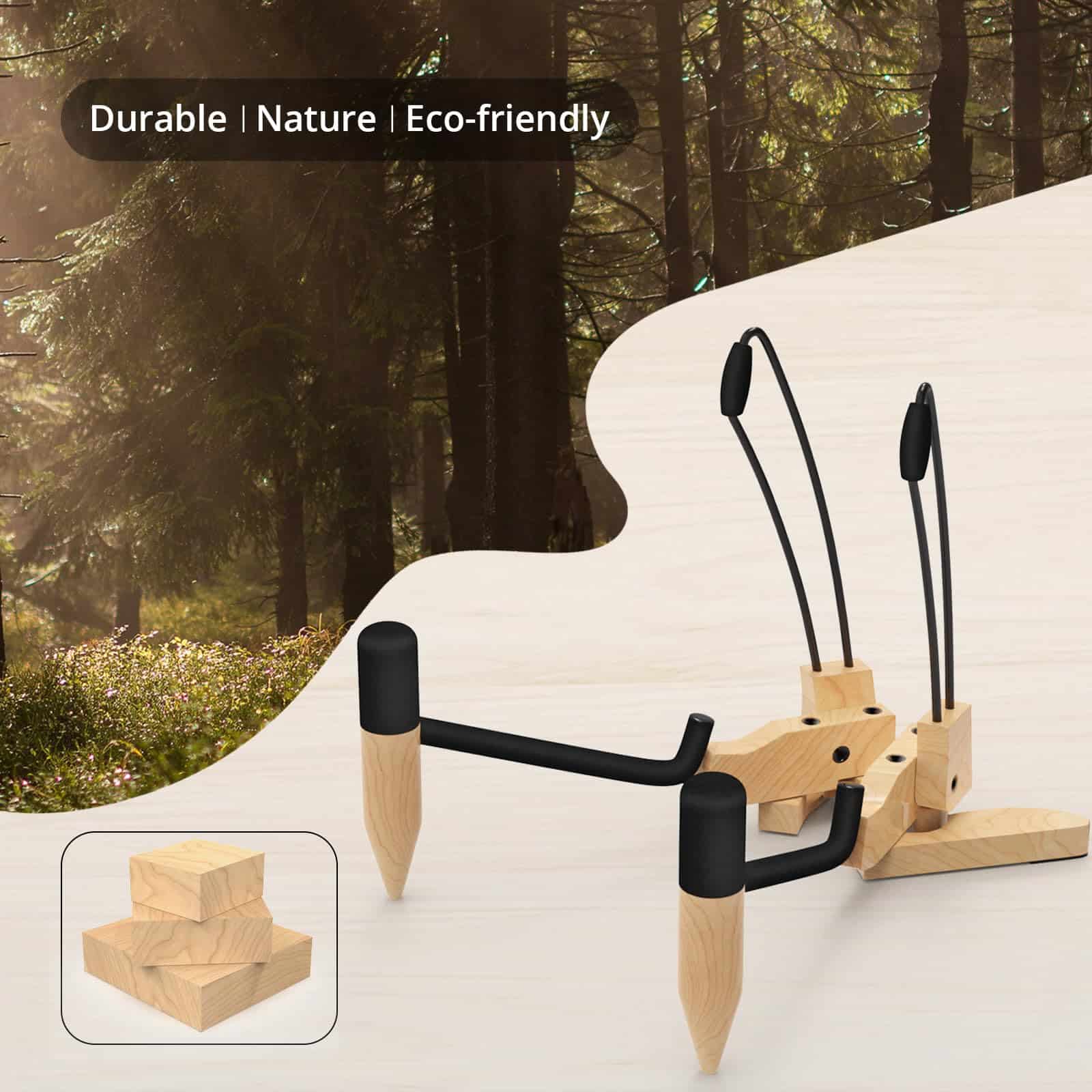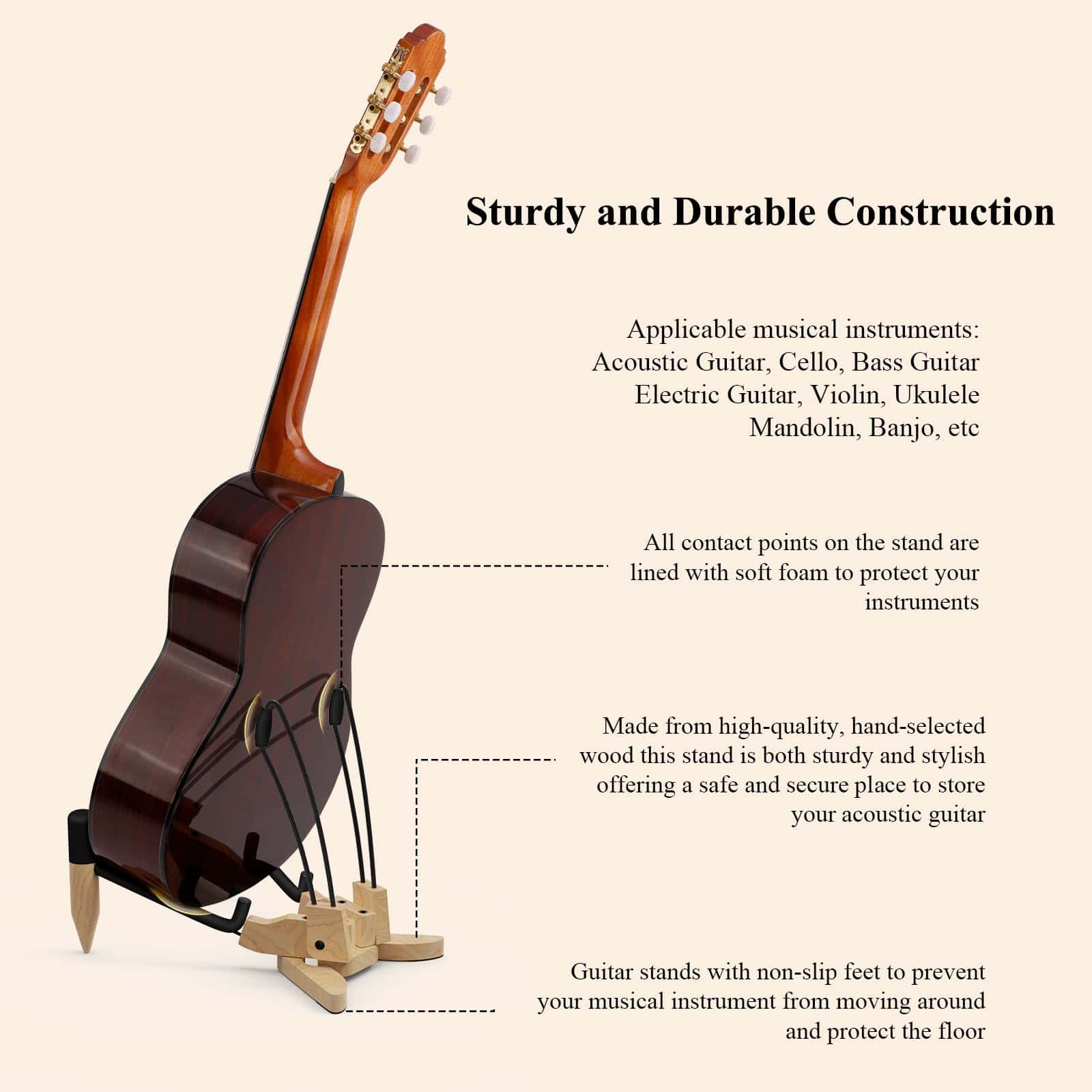 1. Construcción sólida de madera: Hecho de madera de fresno maciza, el soporte proporciona excelente estabilidad y durabilidad, asegurando que pueda sostener varios instrumentos de forma segura sin tambalearse o volcarse.