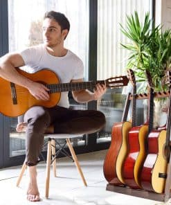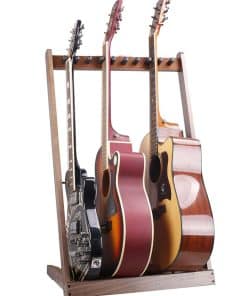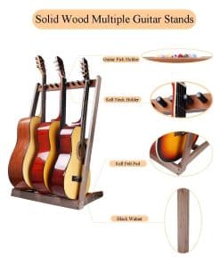 El soporte de guitarra HilerPunk es un accesorio profesional para instrumentos musicales y fabricante de regalos musicales. Estamos comprometidos con la calidad y brindamos una experiencia de compra excelente. Para diferentes tipos de guitarras, puede ajustar la separación de las estacas de espuma para colocar diferentes tipos de guitarras o estuches de guitarra. El soporte puede sostener 5 guitarras eléctricas o bajos, 3 guitarras folk o clásicas, o estuches de guitarra. Este soporte es como una exhibición de arte, perfecto para mostrar tu guitarra. Instalación y desmontaje convenientes, ahorro de espacio, almacenamiento conveniente. Detalles del producto: Material: Madera sólida, Dimensiones del producto: 20.6 pulgadas x 16 pulgadas x 34.2 pulgadas. Peso del producto: 5 libras. Color: madera de nogal negro. Distancia de la tarjeta: 1.2 pulgadas / 3 cm. Atención: Debido a los materiales naturales de madera, el producto puede variar en peso, color y veteado de madera.
