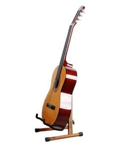 El material de madera sólida es ligeramente más pesado que otros materiales, tiene mejor estabilidad, por lo que la guitarra no se sacudirá después de colocada en ella.