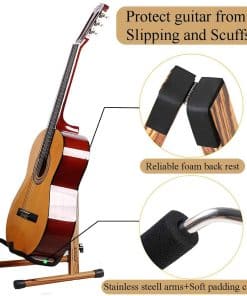 Instalación sencilla, con herramientas de instalación e instrucciones de montaje, se incluyen cuatro cubiertas de goma para evitar el riesgo de deslizamiento. Es un hogar fiable para tu guitarra favorita, puedes mantenerlo en casa o plegarlo y llevarlo de gira.