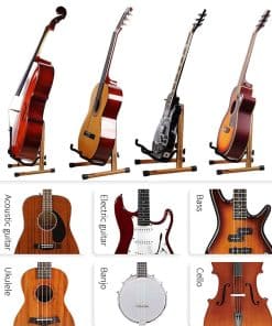 El soporte de guitarra en forma de A de HilerPunk tiene una variedad de funciones de ajuste, que pueden ajustar el ancho de soporte y acomodar fácilmente varias guitarras. Se puede utilizar como soporte para guitarra acústica, soporte para guitarra eléctrica, soporte para guitarra baja, soporte para guitarra clásica, soporte para guitarra de 3/4, soporte para guitarra infantil, soporte para violonchelo, soporte para ukelele, soporte para banjo, etc.