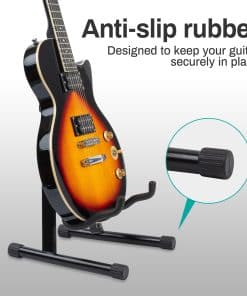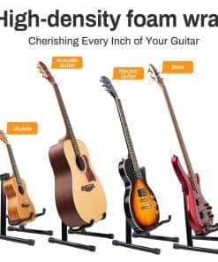Presentamos el versátil y portátil soporte de guitarra universal en forma de A de MOSEN. Diseñado pensando en los músicos, este soporte está diseñado para un almacenamiento y transporte sencillos sin comprometer la durabilidad o funcionalidad. Construido con metal ligero pero resistente, el soporte de guitarra MOSEN cuenta con pies de goma para estabilidad en cualquier superficie. El yugo de espuma suave escalonado garantiza un agarre seguro para tu instrumento, mientras que el respaldo de goma proporciona apoyo y protección adicionales. Lo que distingue al soporte MOSEN es su innovador diseño plegable, que permite que la parte superior se pliegue de forma compacta para un almacenamiento y transporte eficientes. Esta característica única lo hace ideal para músicos en movimiento, ya sea que te dirijas a un concierto, una gira, un festival de música, una fiesta, una ceremonia o un espectáculo de talento. Con su estructura clásica en forma de A, el soporte MOSEN ofrece una plataforma estable para tu guitarra, asegurando que permanezca segura en su lugar sin riesgo de volcarse. El acolchado de espuma en los brazos protege tu instrumento de arañazos o daños, mientras que los pies antideslizantes evitan cualquier movimiento no deseado causado por el peso de tu guitarra. La versatilidad es clave con el soporte MOSEN, ya que su ancho flexible y los brazos de cuna escalonados acomodan guitarras de todas las formas y tamaños, incluidas guitarras acústicas, clásicas, eléctricas, bajos, ukuleles, banjos y violines. Ya seas un intérprete experimentado o recién empezando, el soporte de guitarra universal en forma de A de MOSEN es el compañero perfecto para mantener tu instrumento seguro y protegido dondequiera que te lleve tu viaje musical.